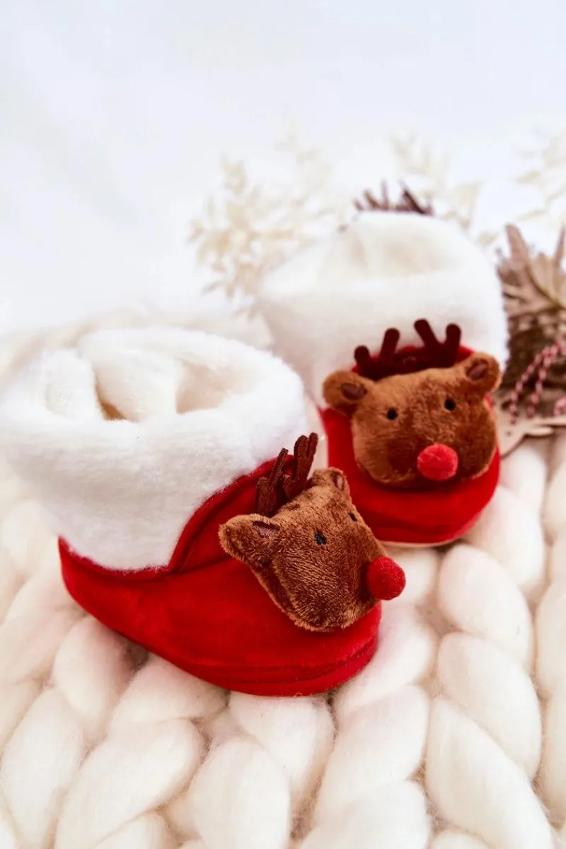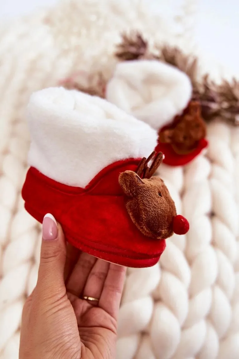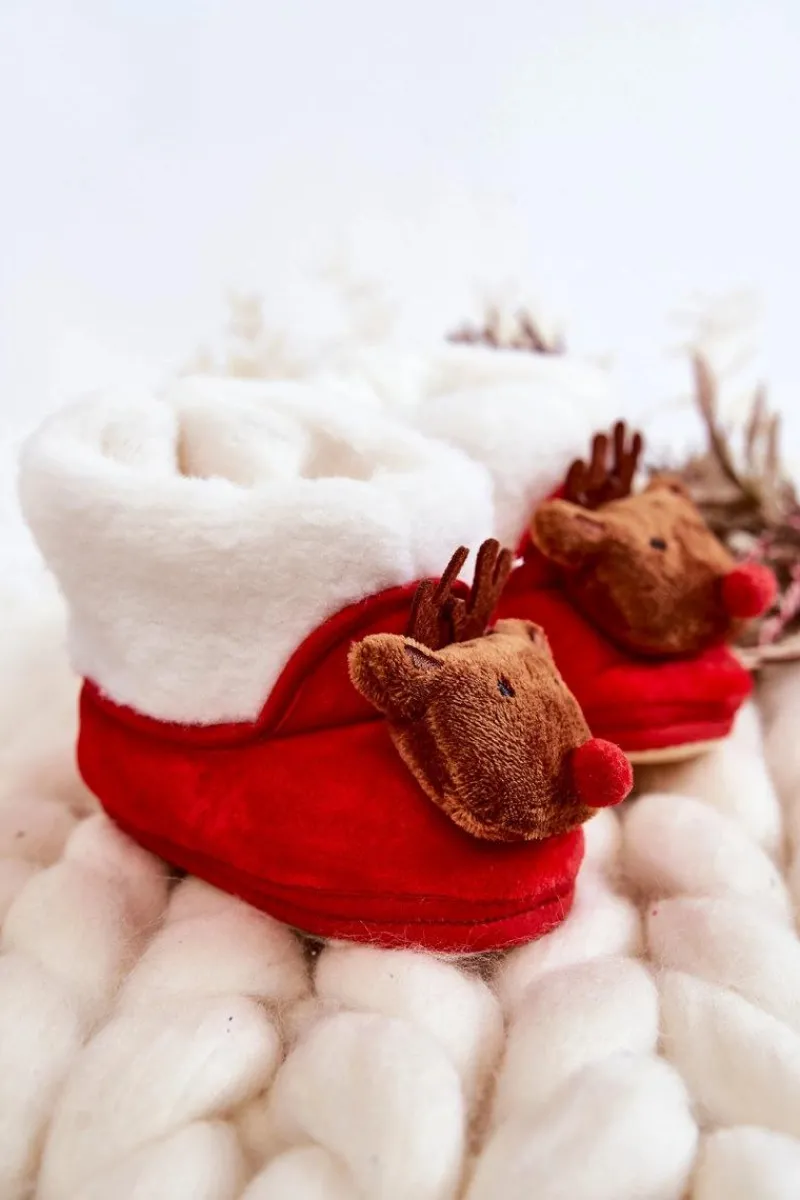 Sale Aura.via Dziecięce Ocieplane Papcie Brązowy Renifer Czerwone