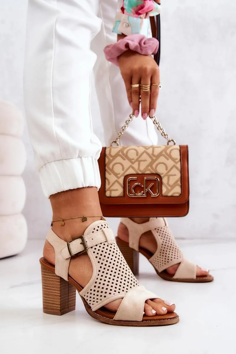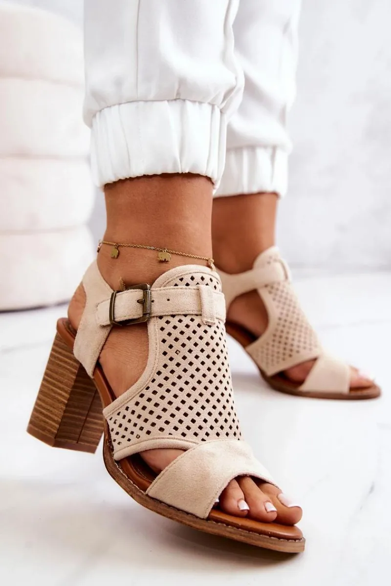 Piękne i wygodne sandały na słupku. Buty wykonane są z wysokiej jakości zamszowej eko skóry. O Twój komfort zadba miękka cholewka oraz wkładka ze skóry naturalnej. Modny kolor i drewniany słupek urozmaicą wszystkie Twoje stylizacje. Koniecznie sprawdź całą naszą kolekcję damskich sandałów! Przy wyborze rozmiaru prosimy kierować się tabelą rozmiarów.