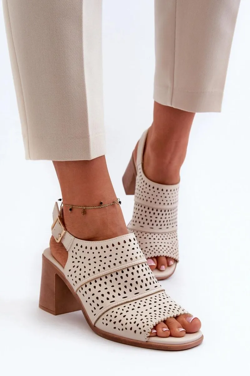 Sandały damskie ażurowe z eko skóry to idealny wybór na letnie dni. Obcas w formie słupka. Zapinane na regulowany pasek ze sprzączką. Doskonale będą pasować zarówno do sukienek, jak i spodni, dodając uroku każdej letniej stylizacji. Przy wyborze rozmiaru prosimy sugerować się tabelą rozmiarów.