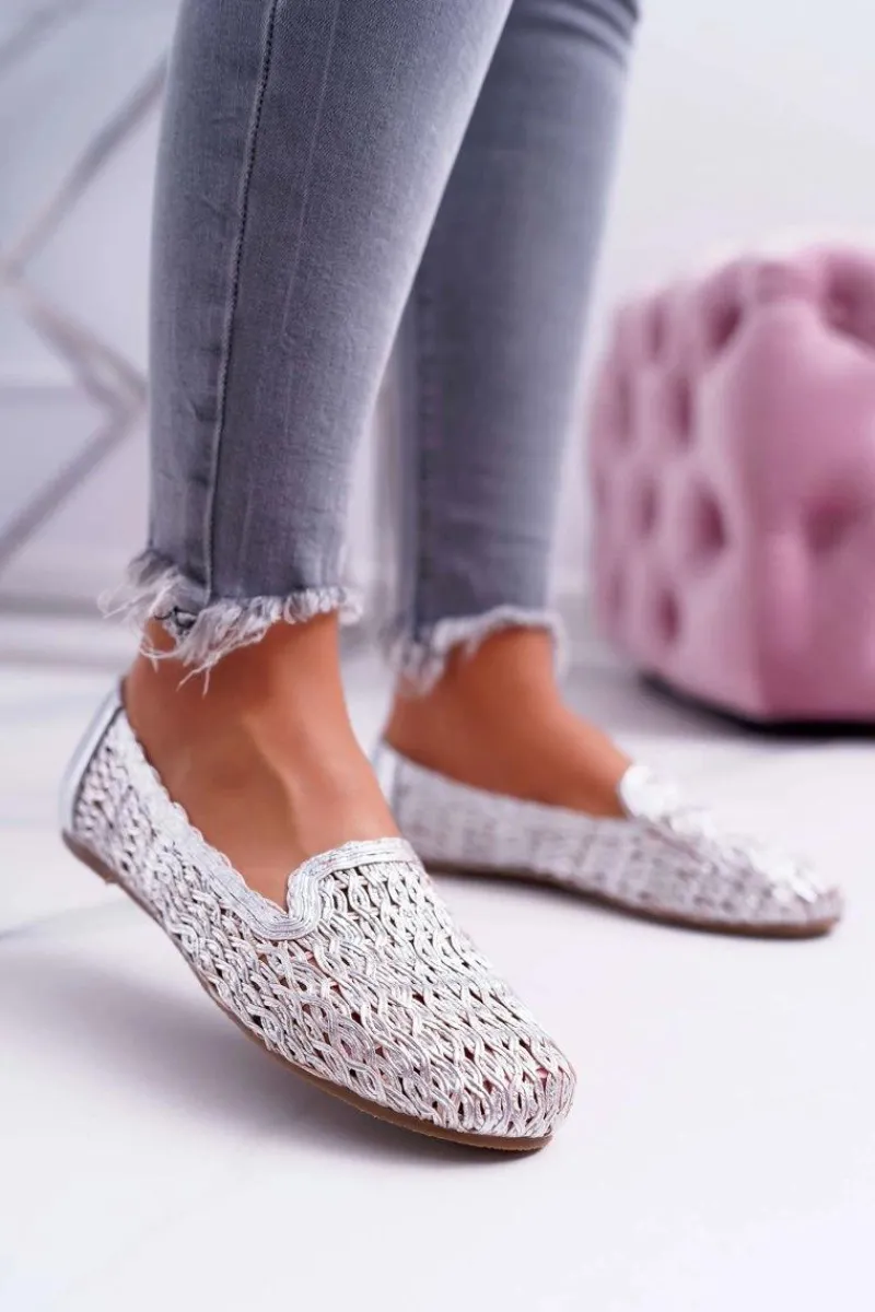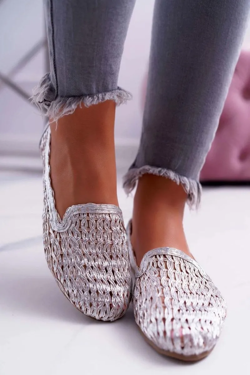 Sale Baleriny Damskie Lu Boo Plecione Srebrny 4Ever Damskie Baleriny Klasyczne
