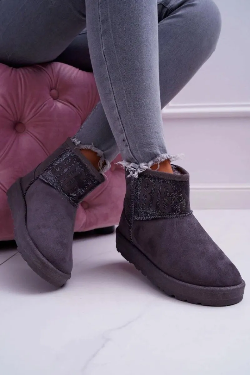 Sale Big Star Shoes Damskie Botki Śniegowce Ocieplane Szare Big Star EE274262