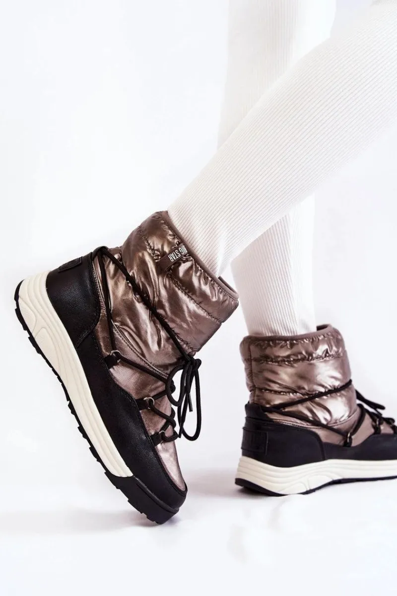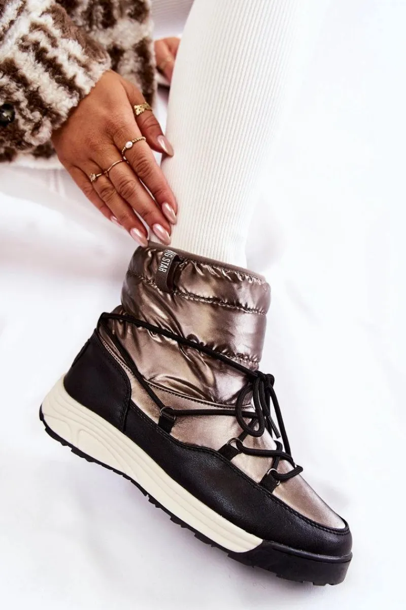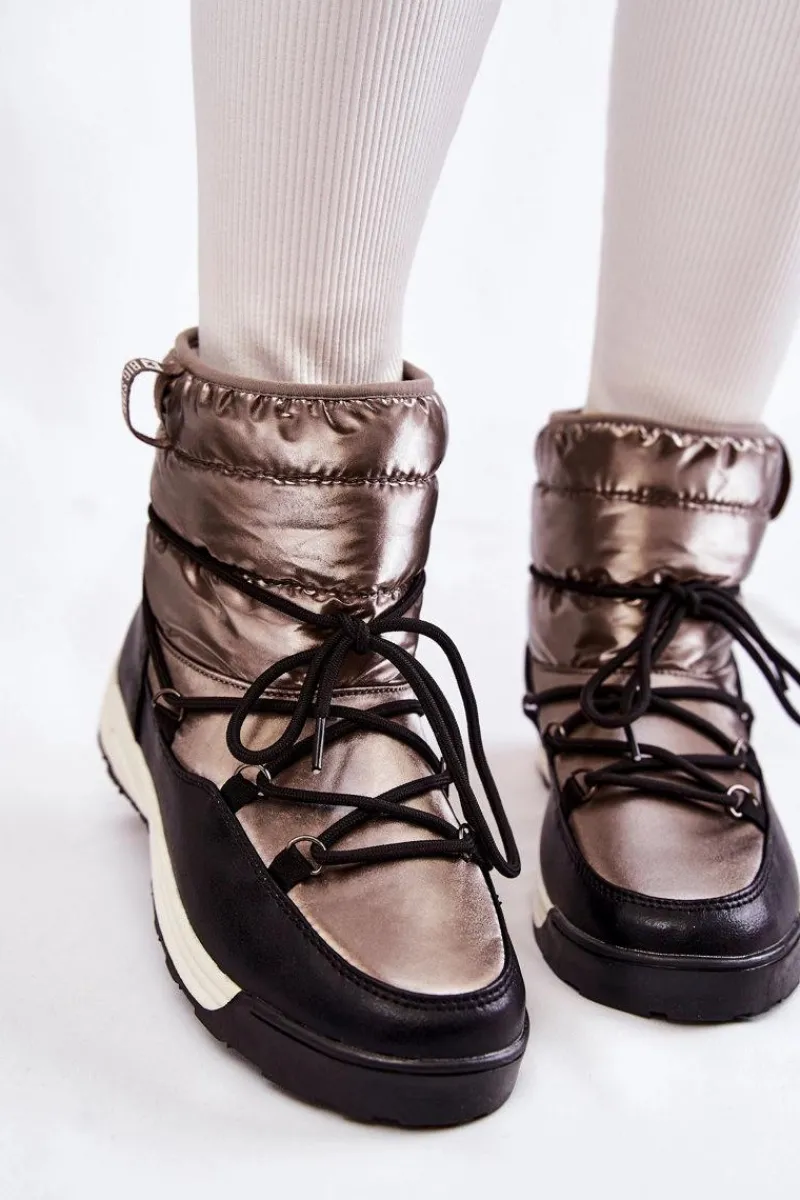 Modne botki damskie zostały wykonane z wysokiej jakości materiałów odpornych na mróz i wiatr. Posiadają w środku ocieplenie w postaci miłego w dotyku koca obuwniczego. Wkładka Memory Foam zapamiętuje kształt stopy, zapewnia doskonałe dopasowanie oraz absorbuje wstrząsy. Dodatkowo jest odporna na odkształcenia oraz pozwala na odparowywanie wilgoci i regulacje temperatury. Model wsuwany ze sznurowaniem. Przy wyborze rozmiaru prosimy sugerować się tabelą rozmiarów.