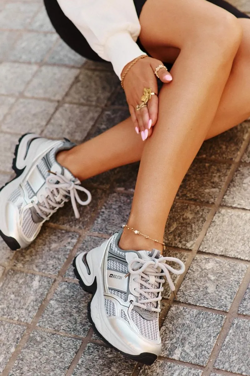 Sneakersy damskie od marki Big Star. Wykonane z połączenia eko skóry i materiału tekstylnego, to idealna propozycja dla osób ceniących styl i wygodę. Osadzone na masywnej podeszwie, zapewniają stabilność i komfort przez cały dzień. Zaokrąglone noski oferują swobodę ruchu, a miękka wkładka pokryta materiałem dba o odpowiednią amortyzację. Te sneakersy to doskonały wybór na co dzień! Przy wyborze rozmiaru prosimy sugerować się tabelą rozmiarów.