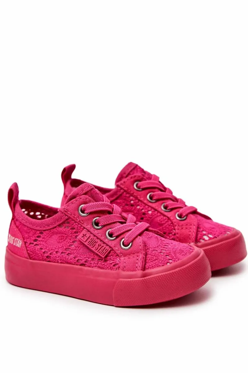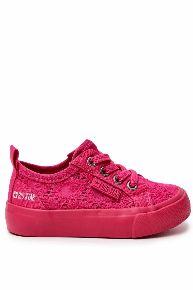 Cudowne trampki dziecięce marki BIG STAR. Trampki wykonane są z materiału tekstylnego w ażurowy wzór. Posiadają antypoślizgową podeszwę. Miękka wkładka zapewni komfort podczas noszenia. Trampki są wsuwane, posiadają gumki imitujące sznurówki. Z boku widnieje logo marki Big Star. Koniecznie sprawdź całą naszą kolekcję butów marki BIG STAR! Rozmiary 17-21 posiadają po 3 oczka do sznurówek, rozmiary 22-27 posiadają po 4 oczka, a rozmiary 28-35 posiadają po 5 oczek. Przy wyborze rozmiaru prosimy sugerować się tabelą rozmiarów.