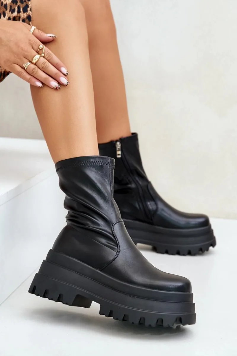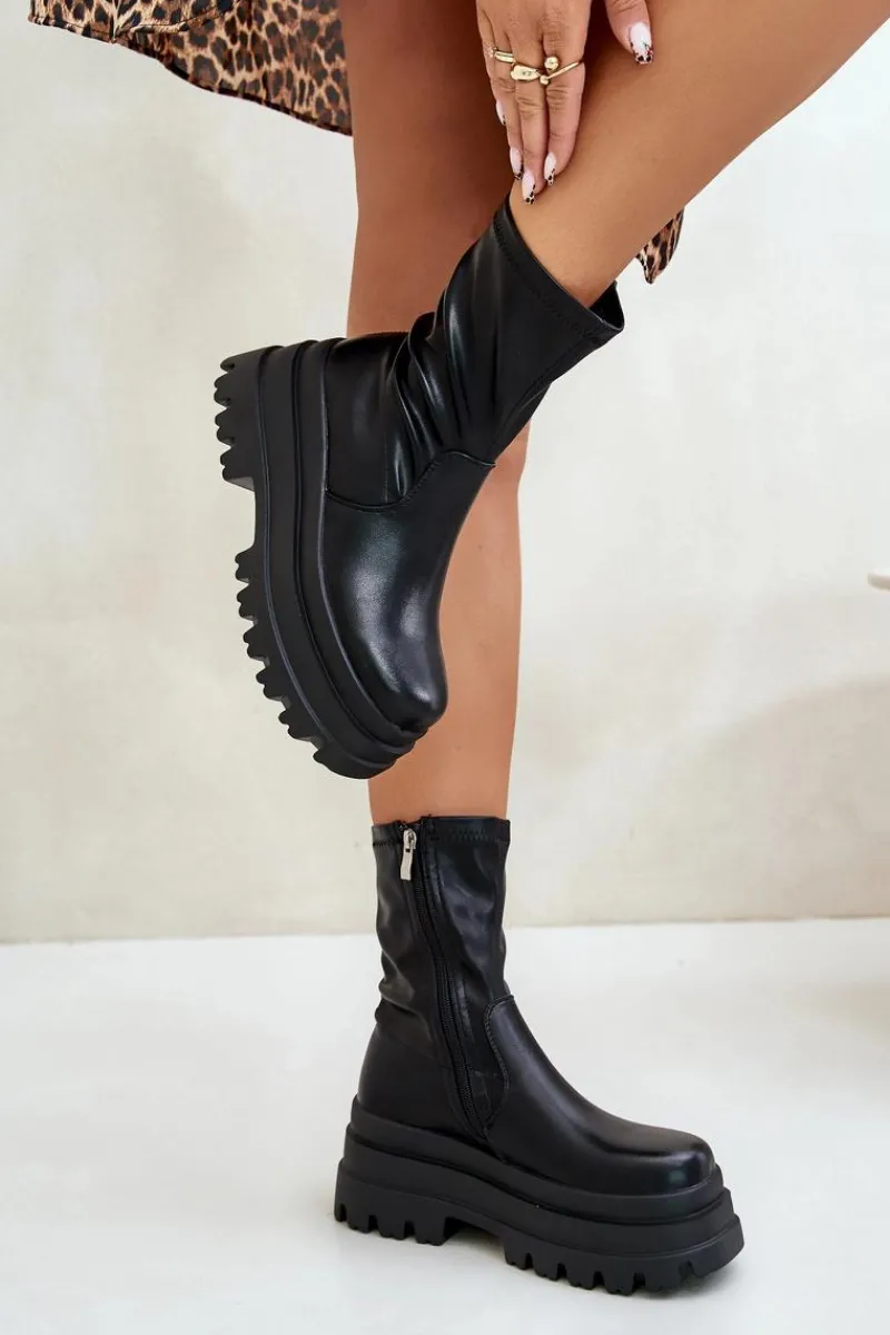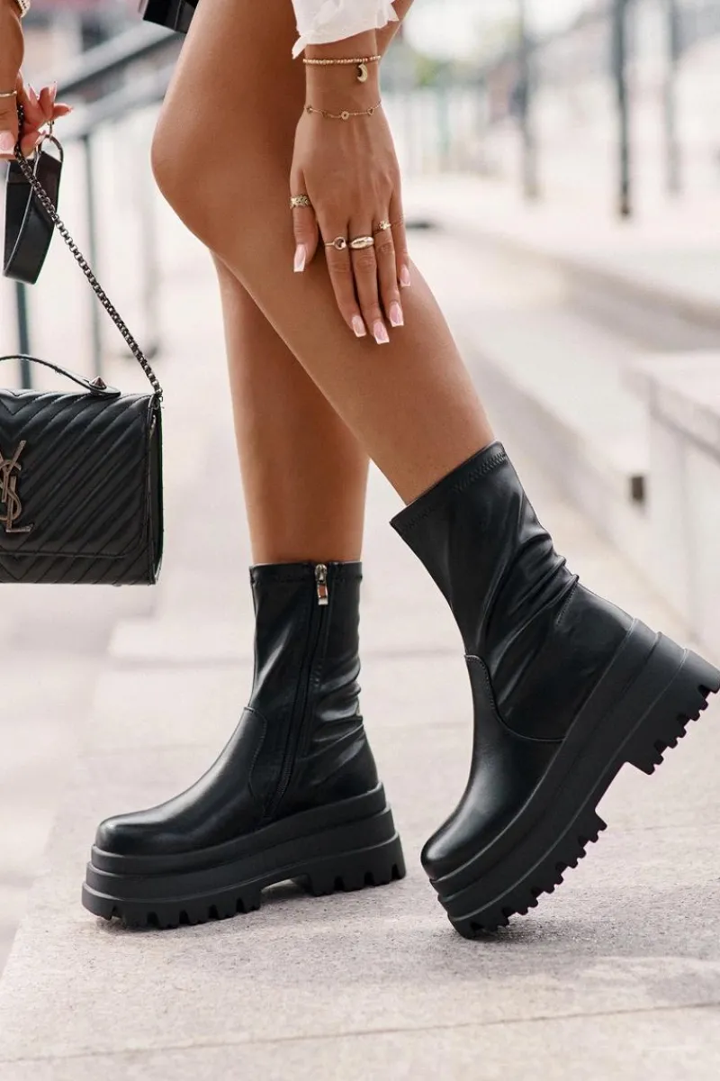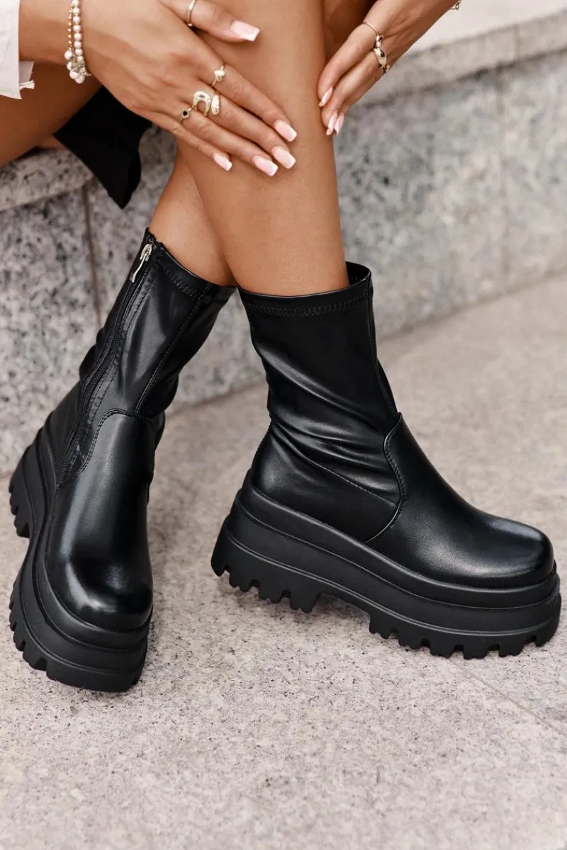 Botki wykonane z eko skóry. Model ten wyróżnia się masywną podeszwą, która doskonale odizoluje od zimnego podłoża. Zapinane na zamek. Noski zaokrąglone. Ocieplane kocem obuwniczym wyłącznie na wysokości stopy. Koniecznie sprawdź całą naszą ofertę damskich botków! Przy wyborze rozmiaru prosimy sugerować się tabelą rozmiarów.
