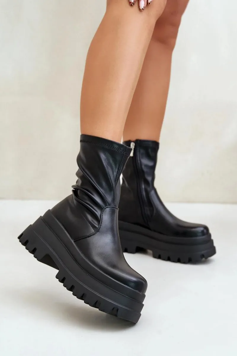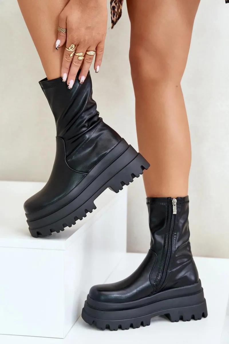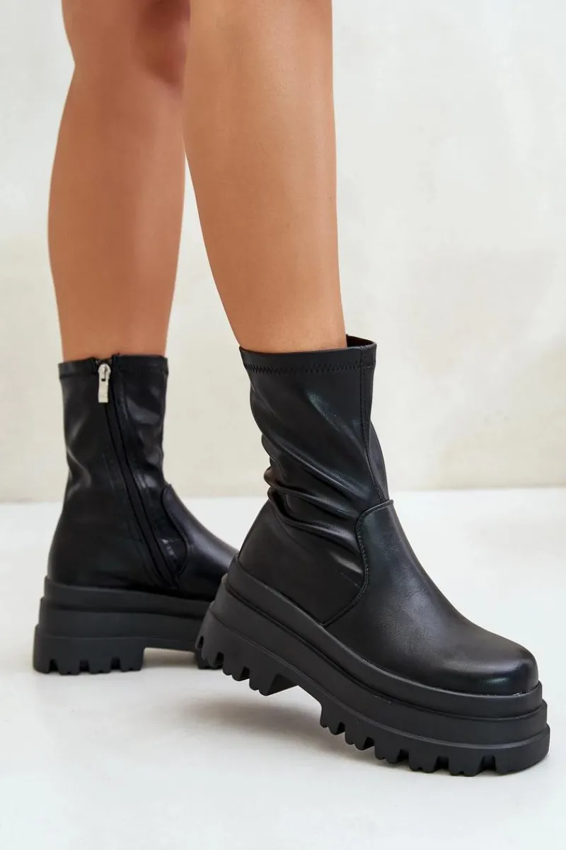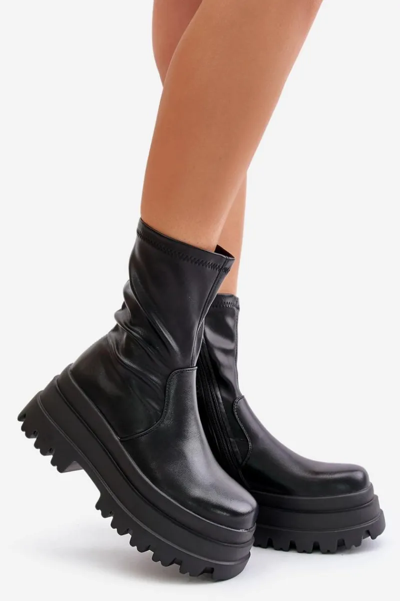 Botki wykonane z eko skóry. Model ten wyróżnia się masywną podeszwą, która doskonale odizoluje od zimnego podłoża. Zapinane na zamek. Noski zaokrąglone. Ocieplane kocem obuwniczym wyłącznie na wysokości stopy. Koniecznie sprawdź całą naszą ofertę damskich botków! Przy wyborze rozmiaru prosimy sugerować się tabelą rozmiarów.