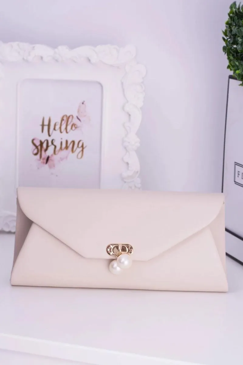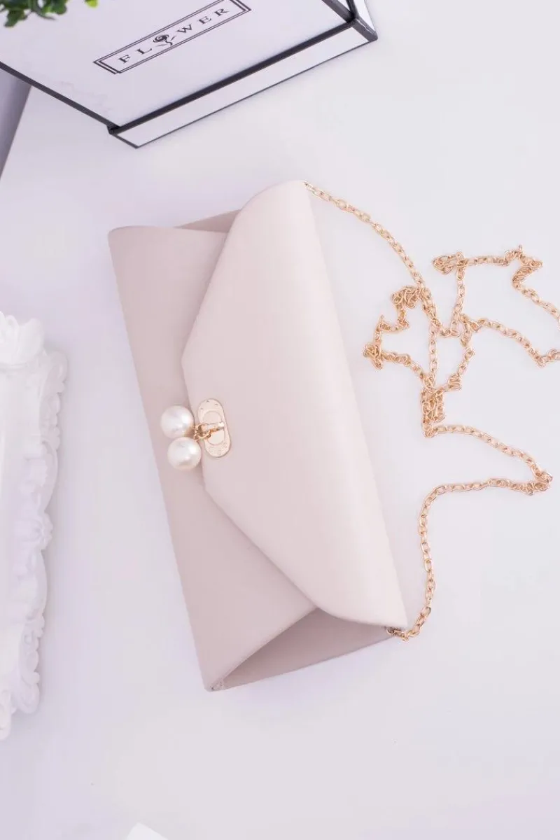 Sale Boto Beżowa Kopertówka Złoty Łańcuch Perły