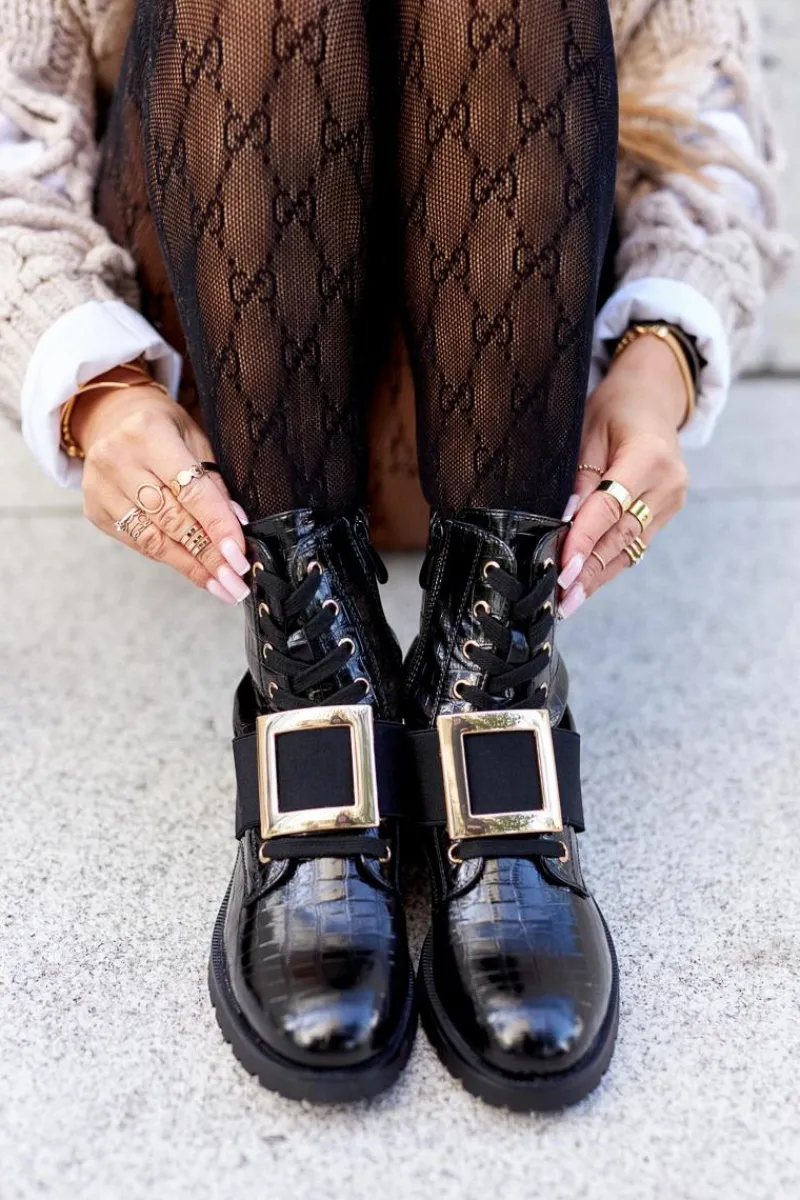 Sale Boto Botki Damskie z klamrą Happy Su Czarne