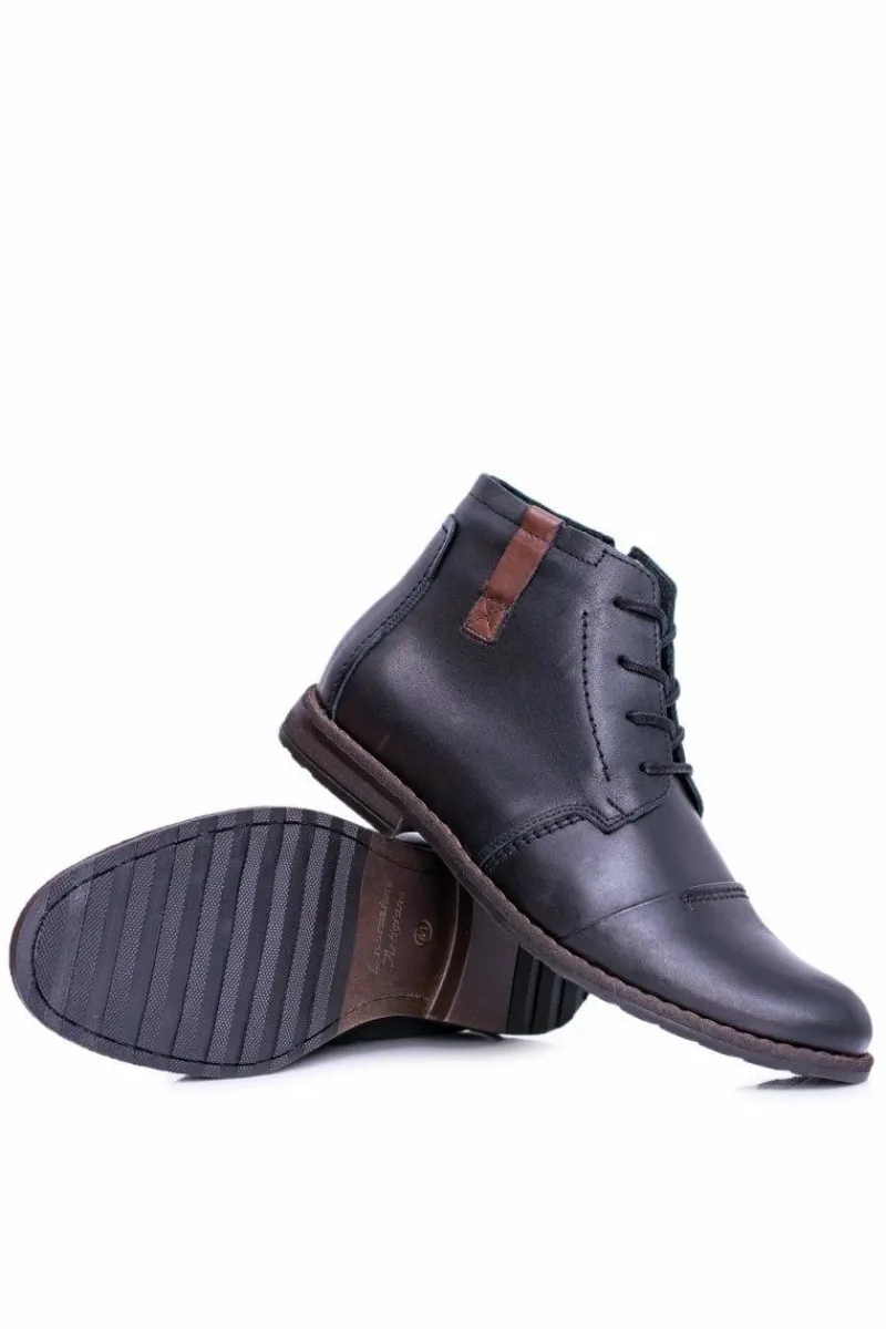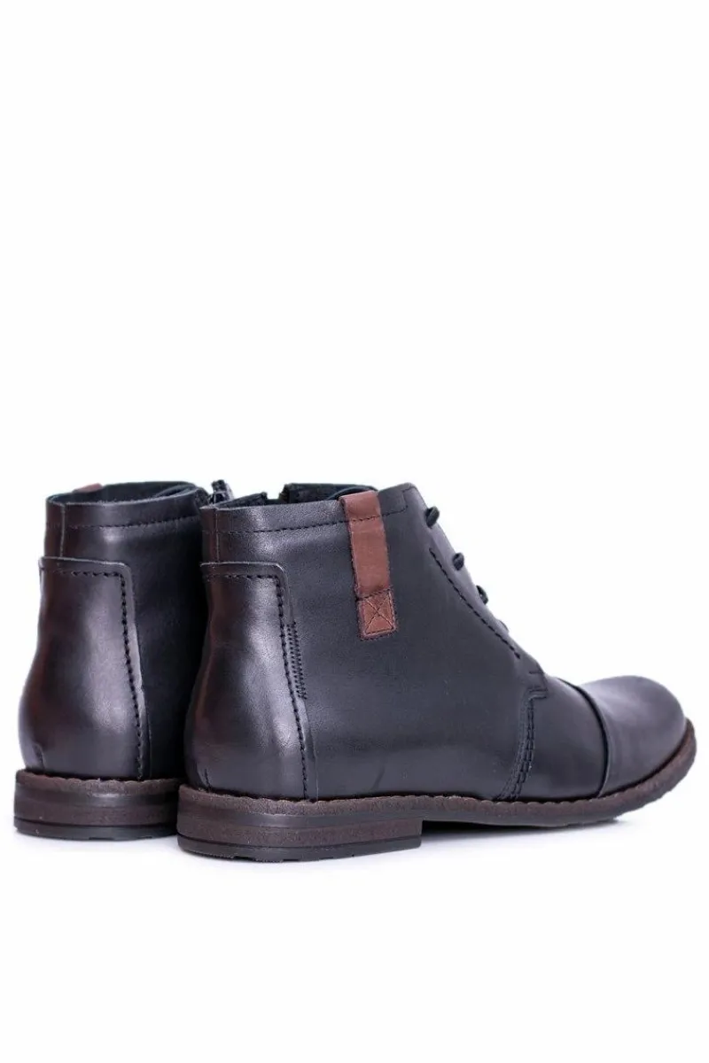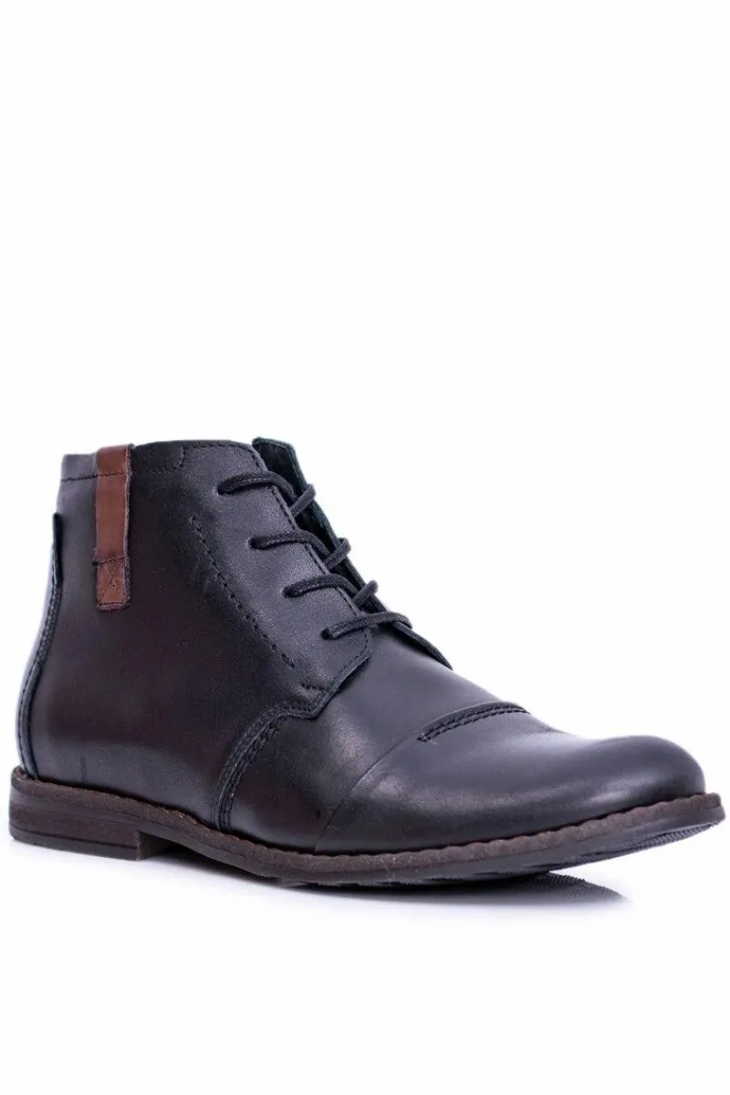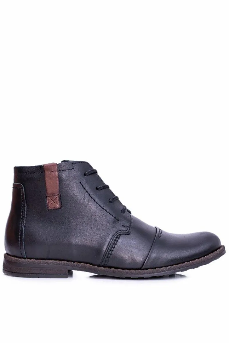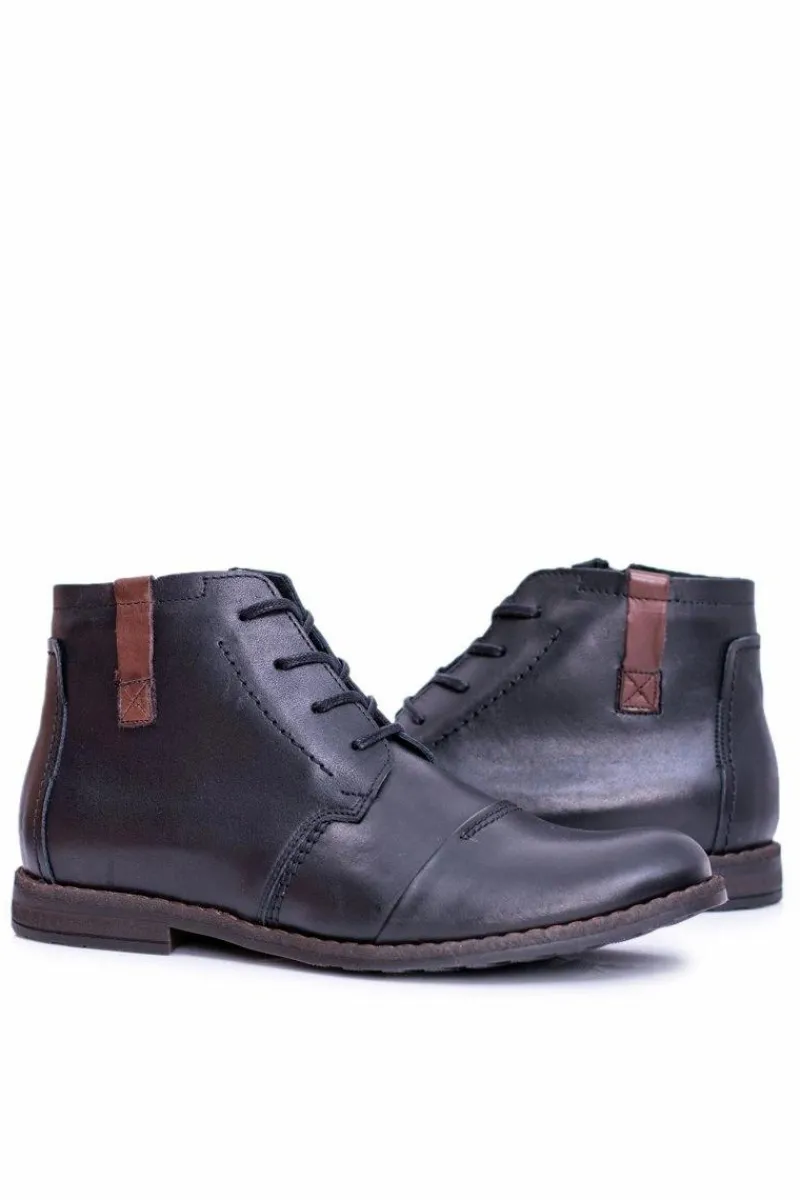 Sale Boto Botki Męskie Skórzane Czarne Trzewiki Testo