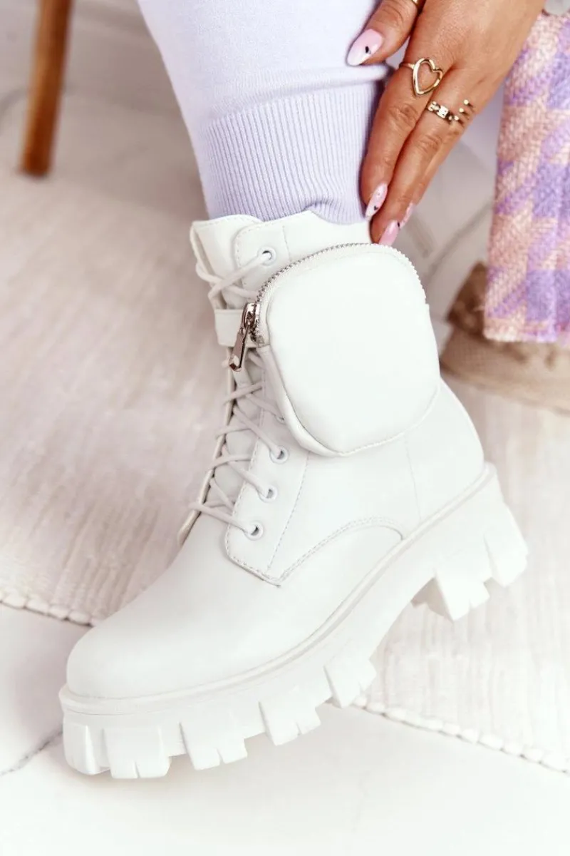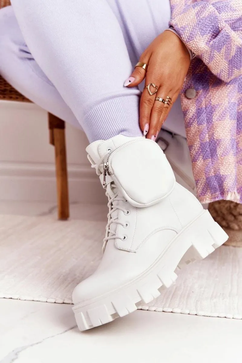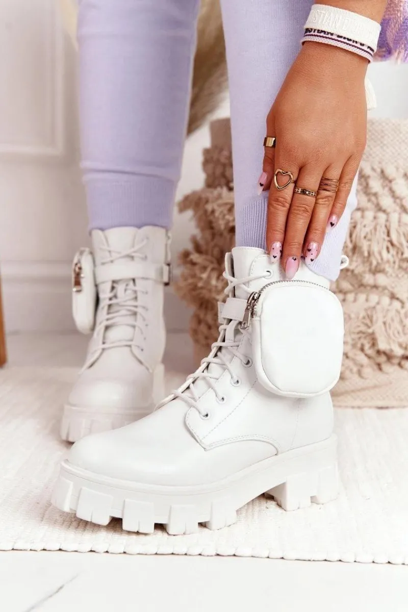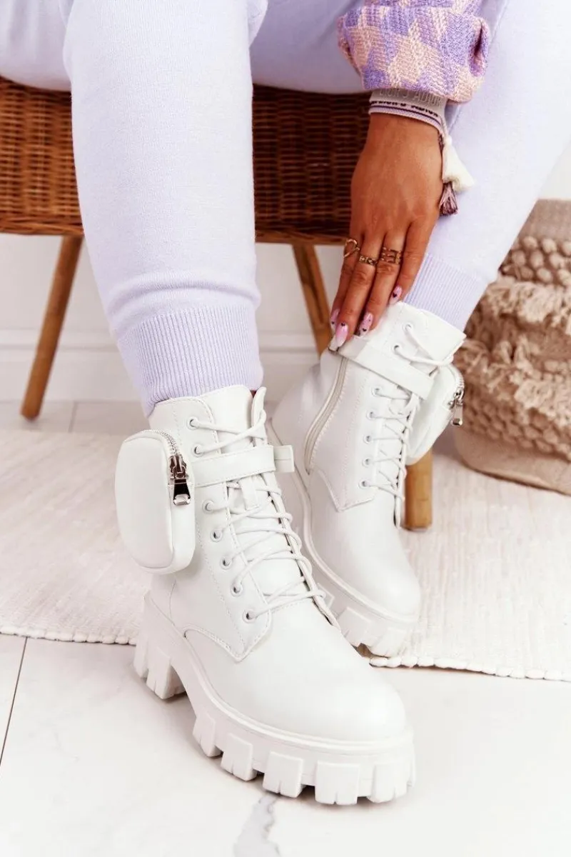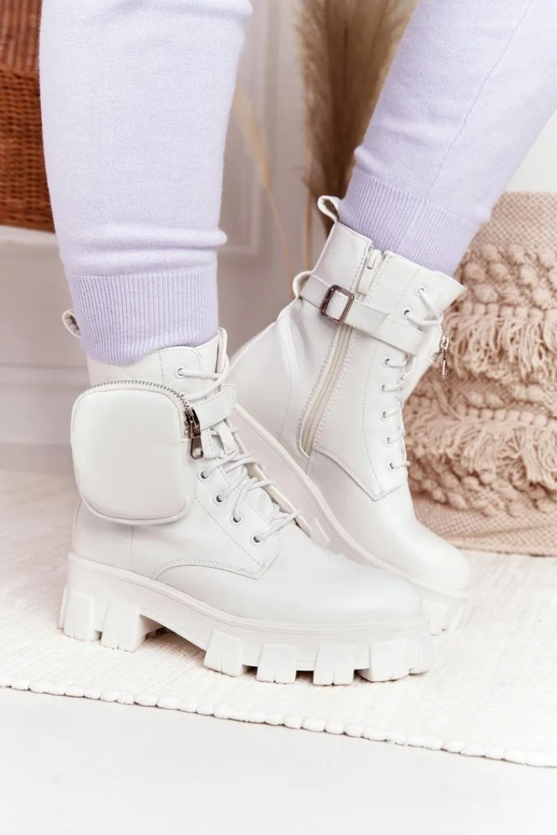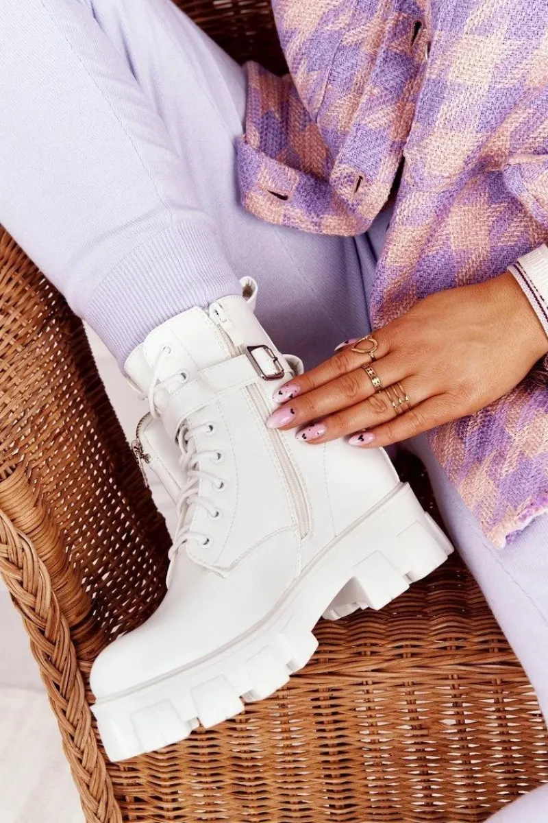 Sale Boto Botki Workery Na Platformie z Nerką Białe Saturday