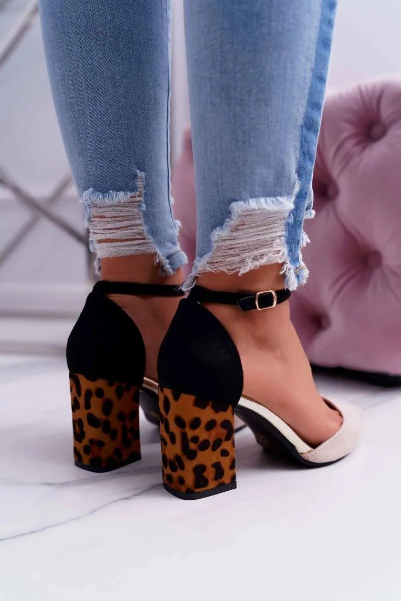 Sale Boto Czółenka Damskie Na Słupku Panterki Beżowe Ferri