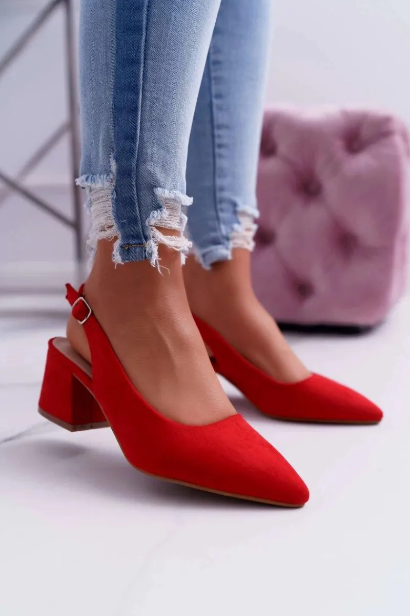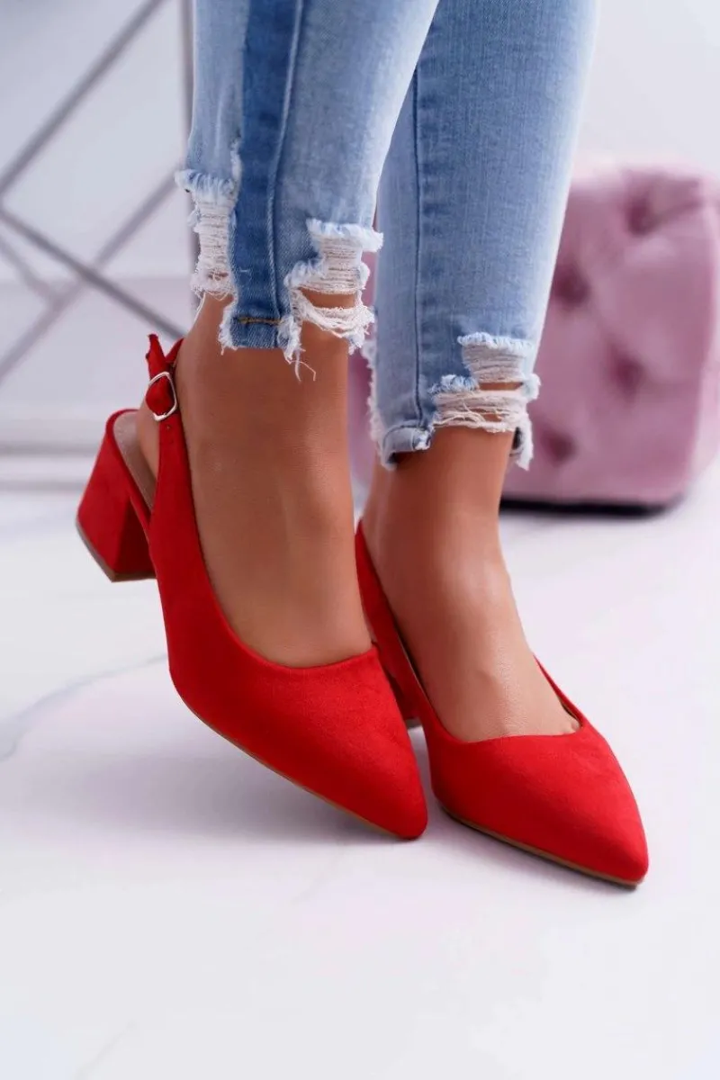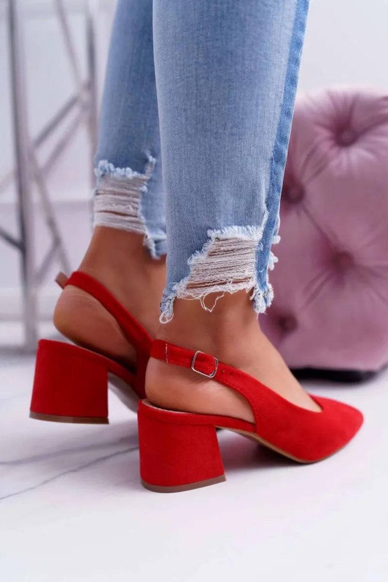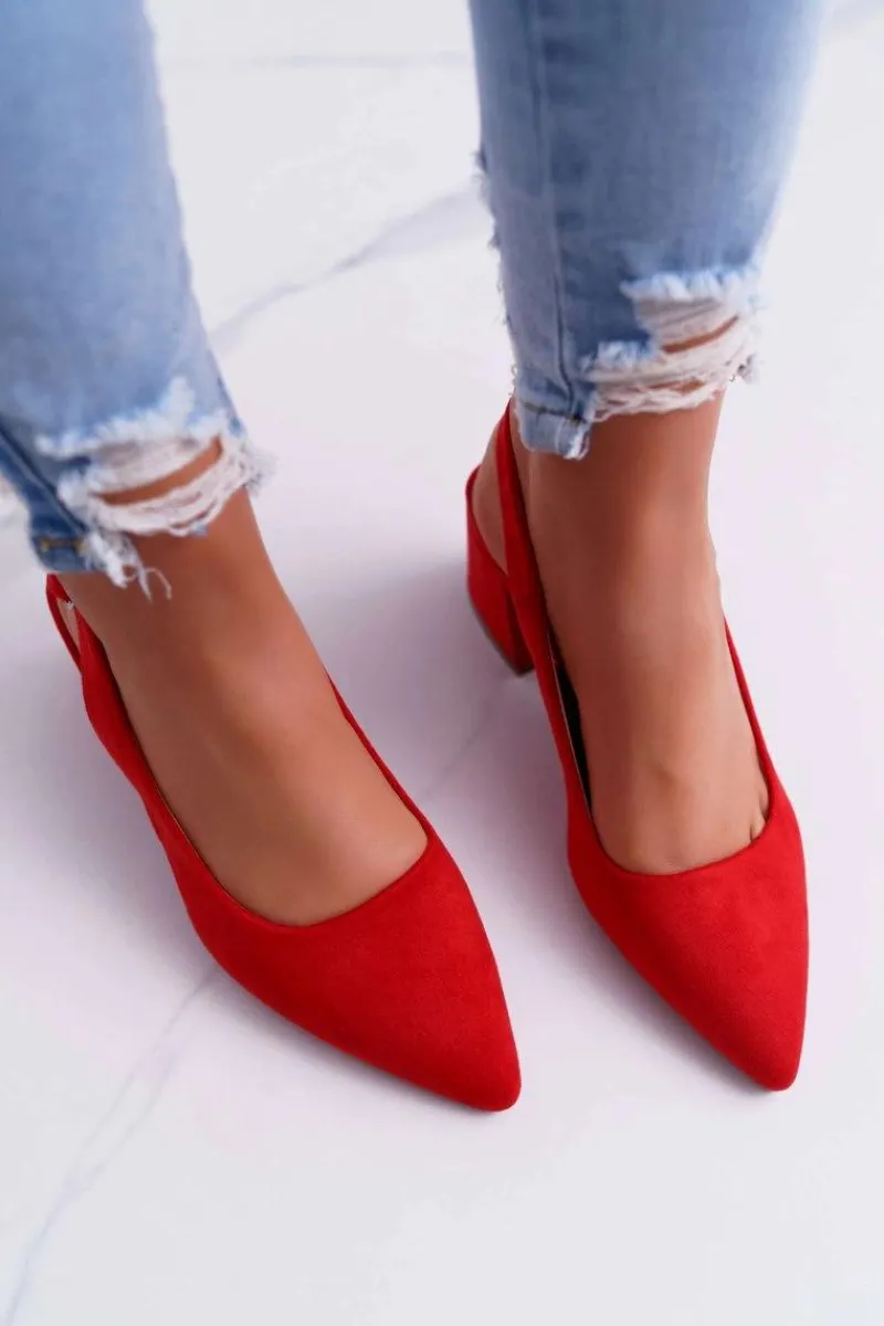 Sale Boto Czółenka Damskie Na Słupku W Szpic Czerwone Contrail