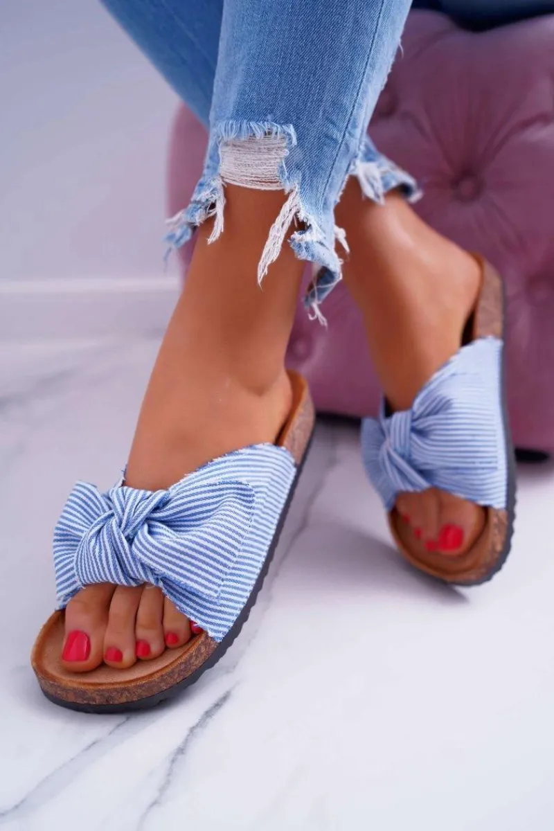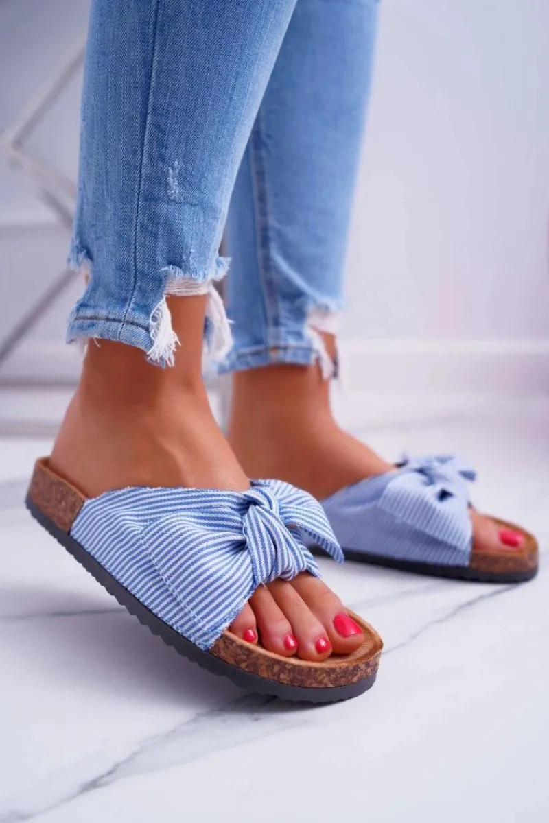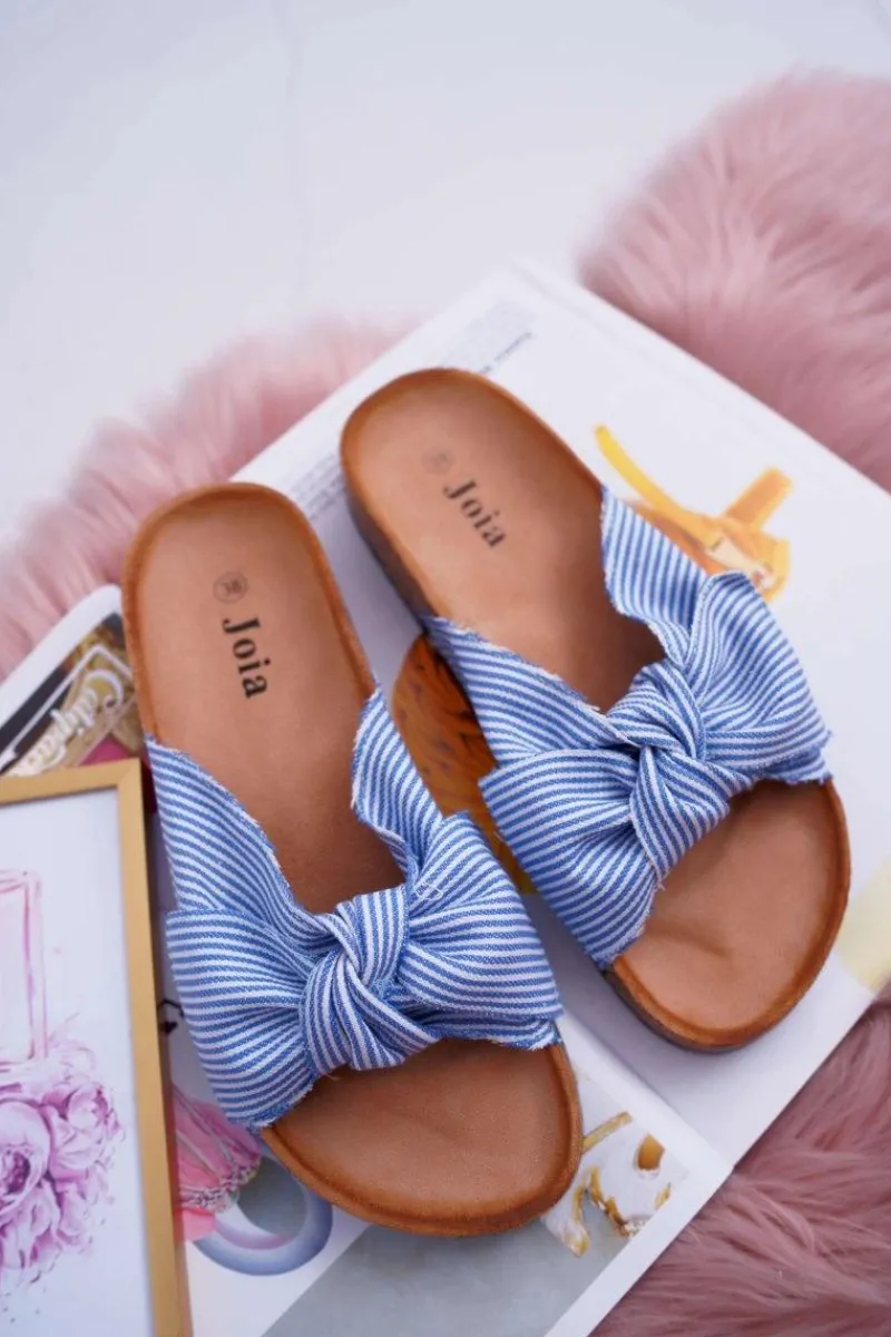Sale Boto Damskie Klapki Na Korku Kokarda Niebieskie Randy
