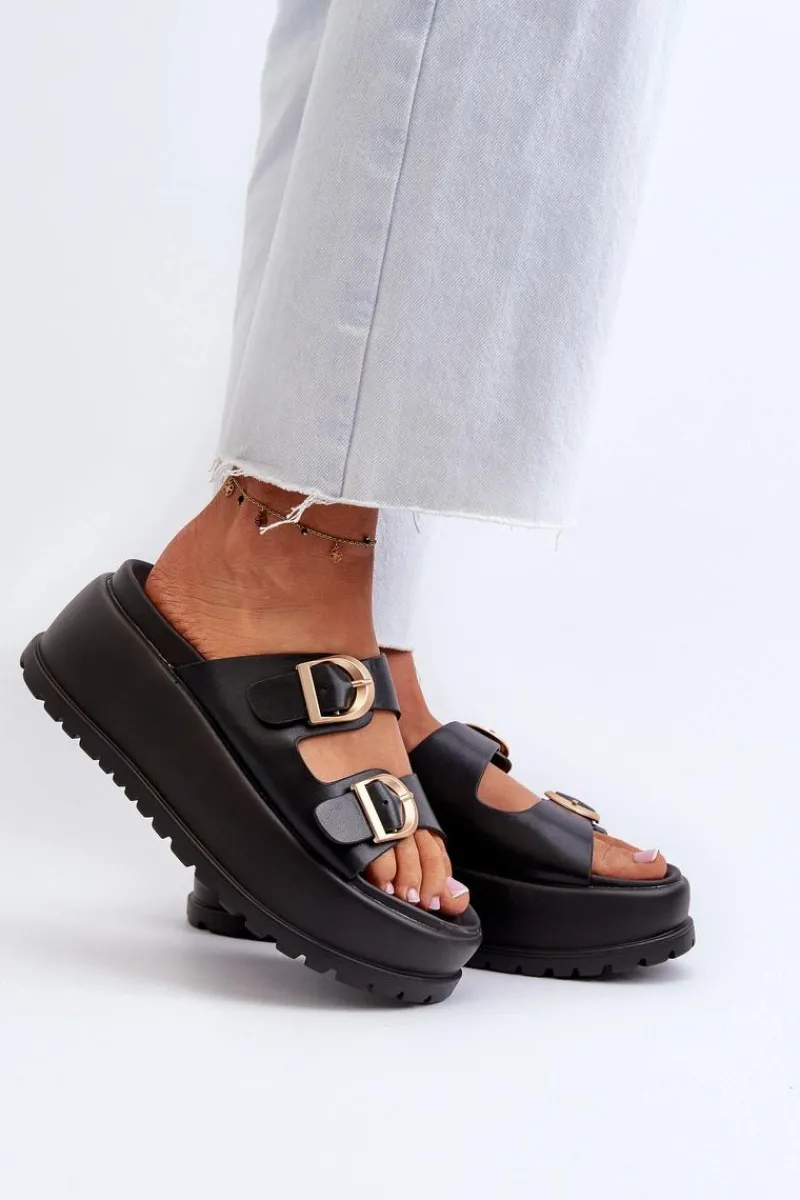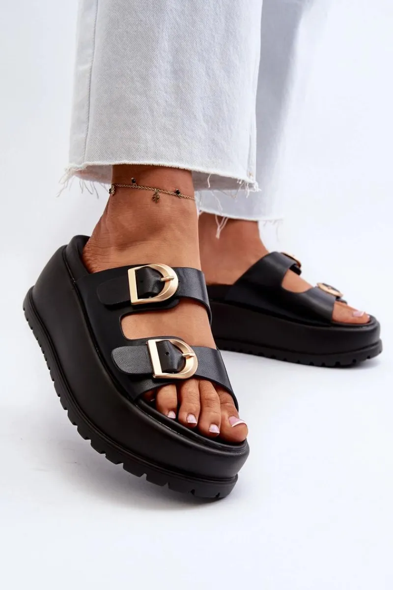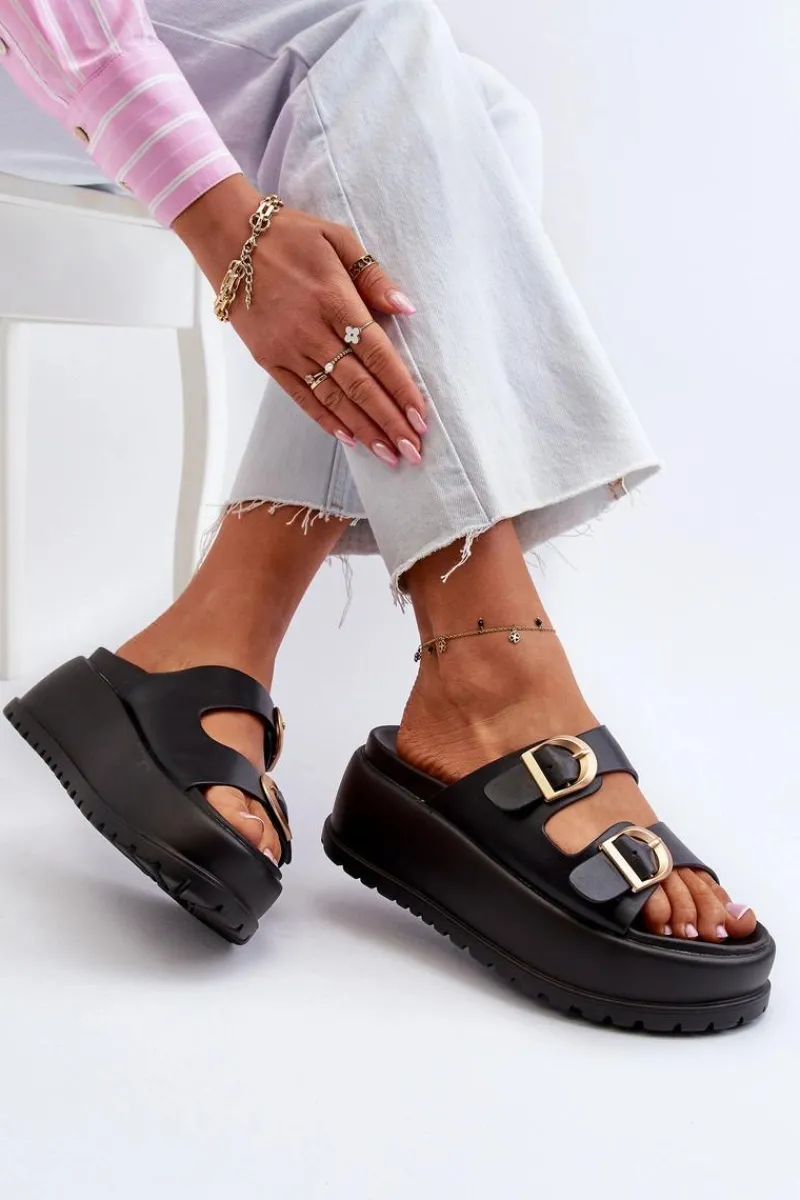 Klapki damskie na masywnej platformie to idealny wybór dla tych, którzy pragną połączyć wygodę z modnym stylem. Wykonane z eko skóry. Regulowane paski z klamrami sprawią, że łatwo dopasujesz je do tęgości stopy. Platforma zapewnia stabilność i wygodę noszenia przez cały dzień. Doskonałe na letnie spacery czy wieczorne wyjścia. Przy wyborze rozmiaru prosimy sugerować się tabelą rozmiarów.