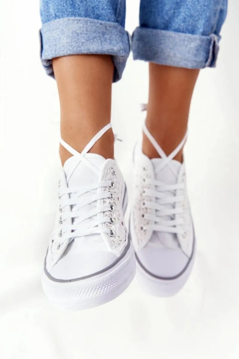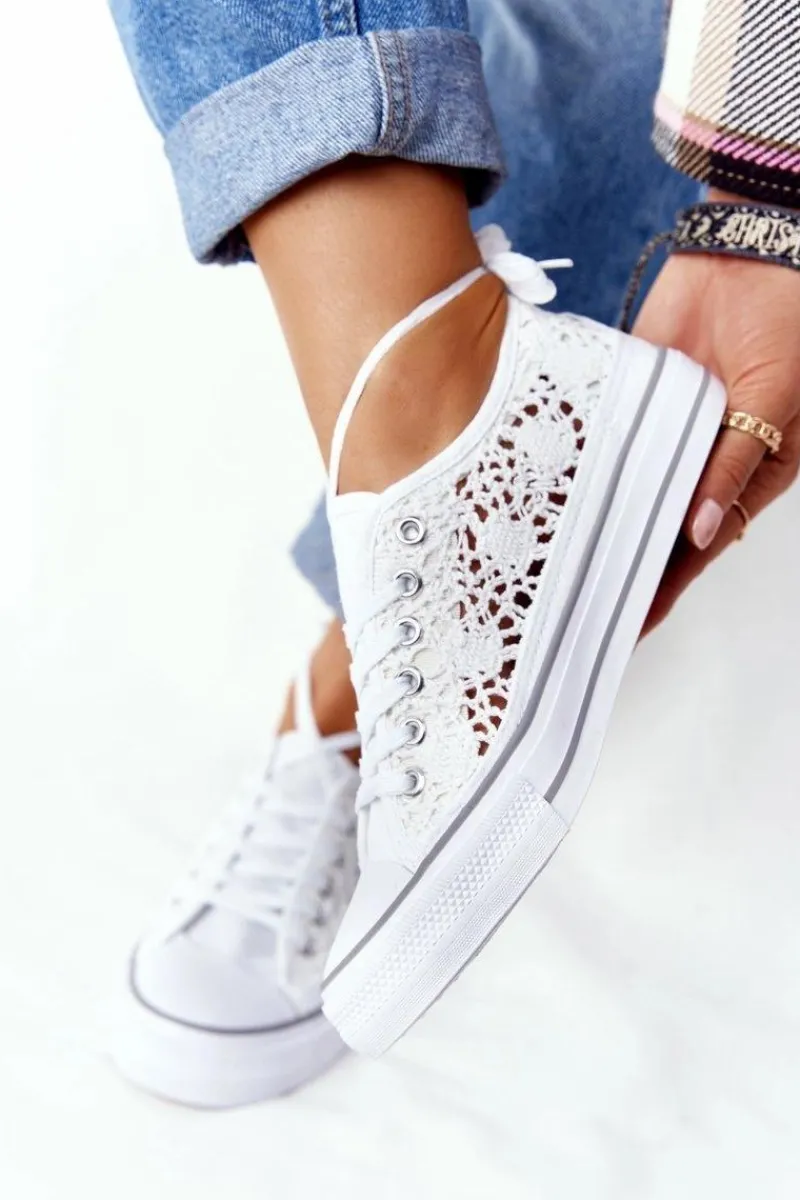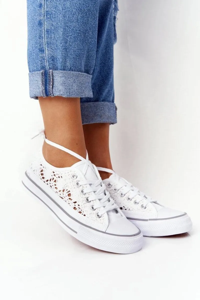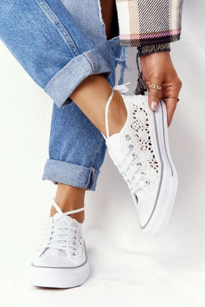 Wyjątkowe damskie trampki. Koronkowe tenisówki pasują do wielu letnich stylizacji. Buty dobrze dopasowują się do kształtu stopy, posiadają miękką, materiałową wkładkę oraz antypoślizgową podeszwę. Koniecznie sprawdź całą naszą kolekcję damskich trampek. Przy wyborze rozmiaru prosimy sugerować się tabelą rozmiarów.