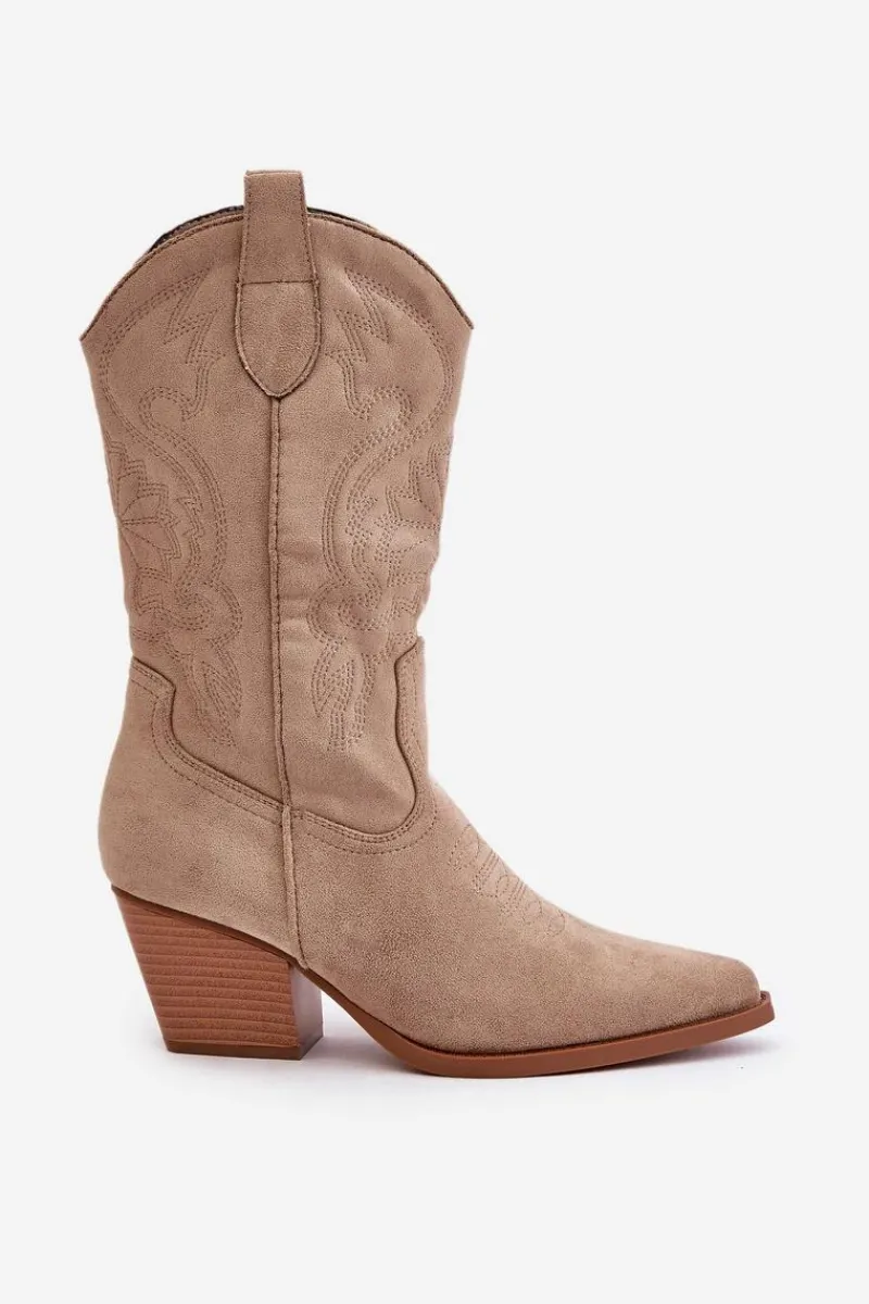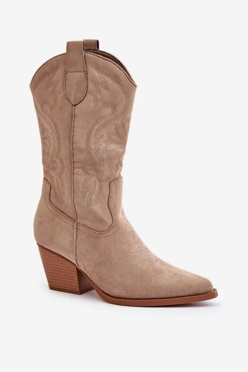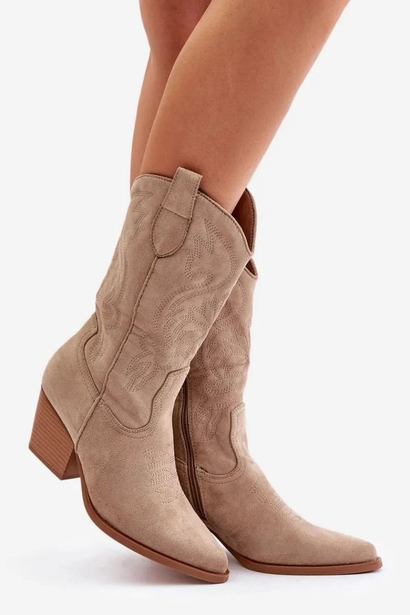 Stylowe damskie kozaki wykonane z eko zamszu to doskonały wybór dla każdej kobiety. Posiadają obcas w formie słupka i spiczaste noski, które dodają szyku każdej stylizacji. Model jest wsuwany, z dodatkowym zapięciem na zamek. Te kowbojskie kozaki doskonale dopełnią różnorodne stylizacji. To niezbędny element Twojej garderoby! Przy wyborze rozmiaru prosimy sugerować się tabelą rozmiarów.