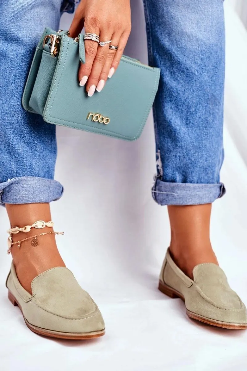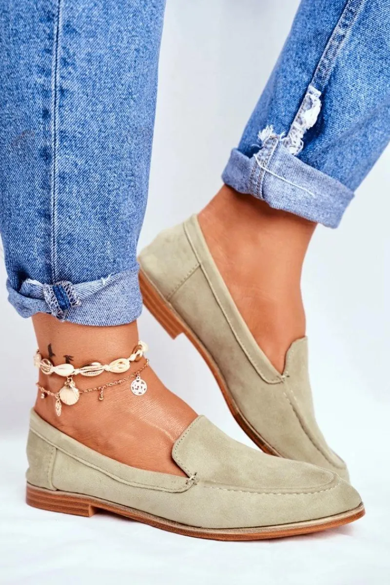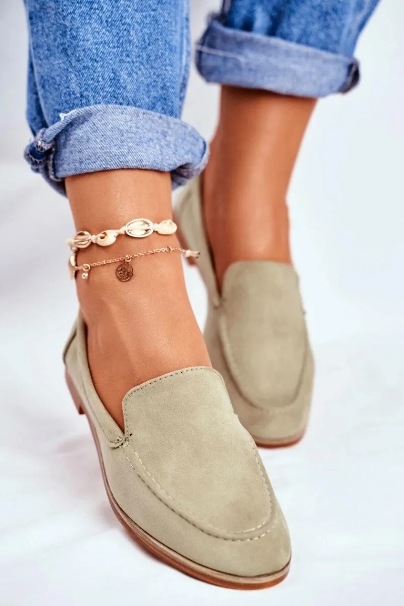 Sale Boto Damskie Półbuty Wsuwane Zamszowe Zielone Twinky