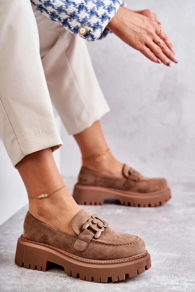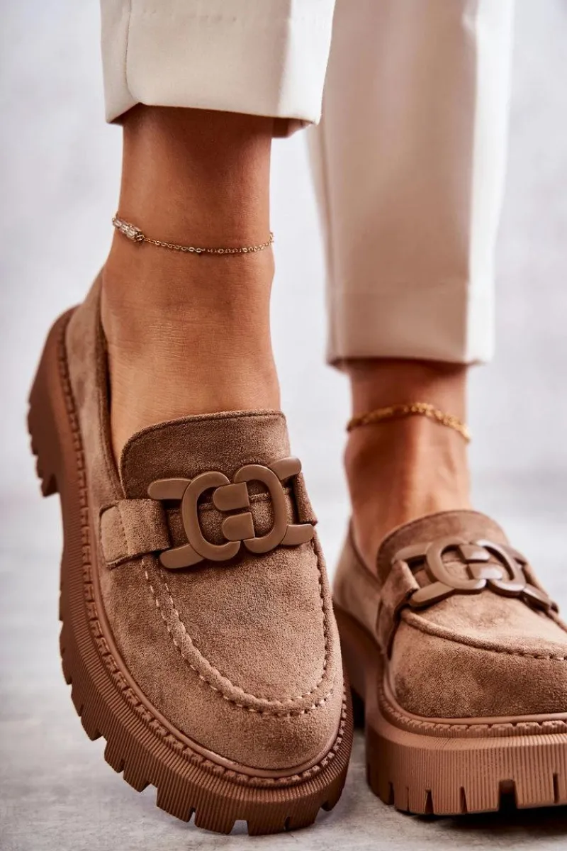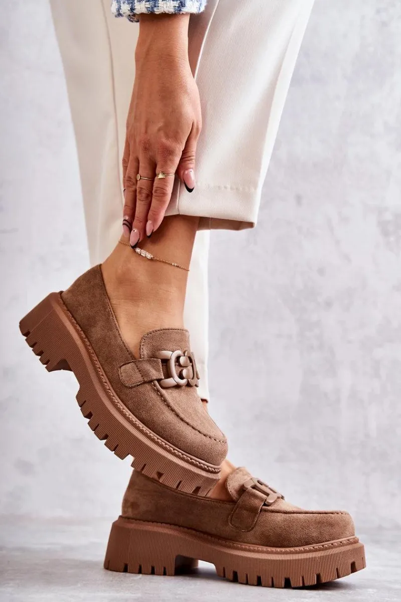 Klasyczne półbuty zostały wykonane z eko zamszu. Na przodzie charakterystyczne zdobienie. Buty te posiadają platformę oraz płaski obcas. Podeszwa ze żłobieniami świetnie odizoluje od nierównego podłoża. Wygodne, a zarazem modne półbuty świetnie sprawdzą się do pracy, na zakupy czy na spotkanie z przyjaciółmi. Miękka wkładka wykonana z eko skóry zapewni komfort podczas użytkowania. Koniecznie musisz je mieć! Przy wyborze rozmiaru prosimy sugerować się tabelą rozmiarów.