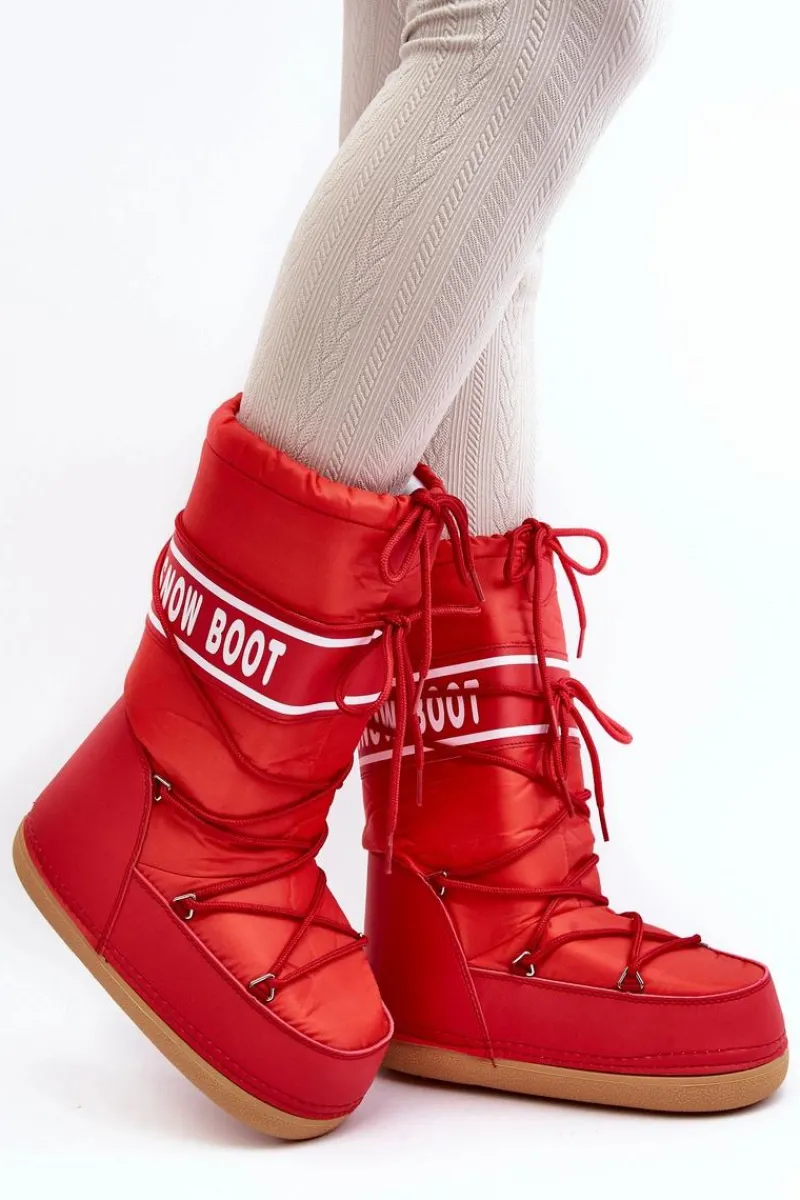 Niezwykle ciepłe i wygodne, damskie śniegowce zostały wykonane z materiałów odpornych na zimno i wiatr. Cholewka z dodatkiem eko skóry i ozdobnym napisem wzbogaci Twoją jesienno-zimową stylizację. Śniegowce są wsuwane i posiadają dodatkowe sznurowanie z przodu i u góry cholewki. Model ten został osadzony na masywnej platformie. Wewnątrz posiadają ocieplenie w postaci pianki i koca obuwniczego. Te śniegowce to idealny model na chłodniejsze dni! Przy wyborze rozmiaru prosimy sugerować się tabelą rozmiarów.