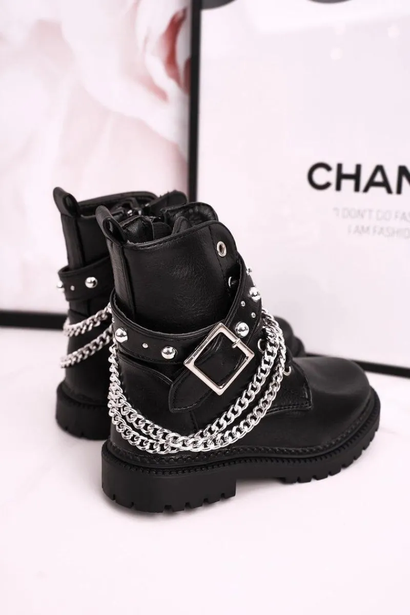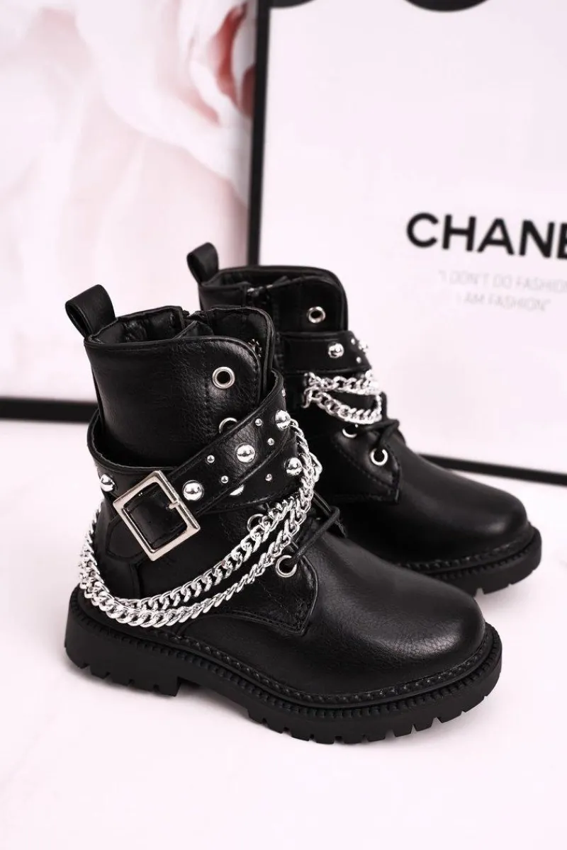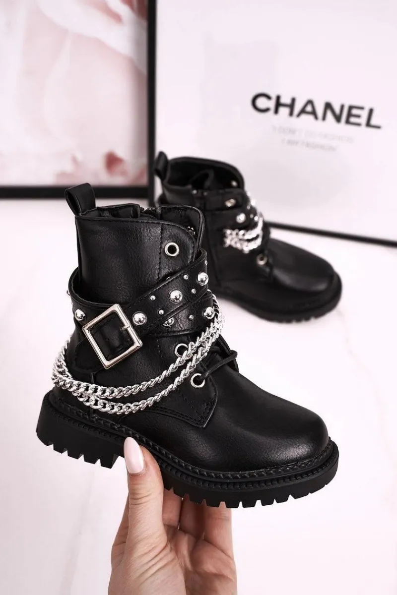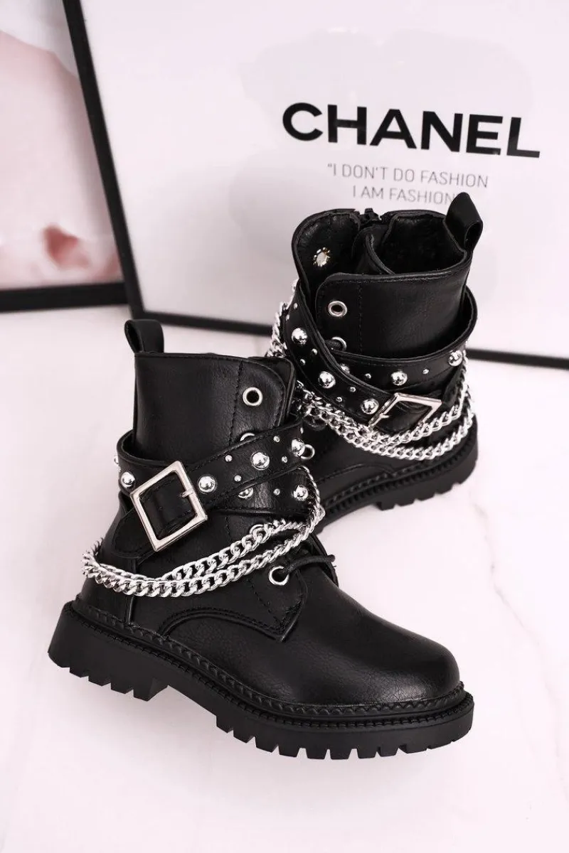 Sale Boto Dziecięce Botki Z Łańcuchem Ocieplone Futerkiem Czarne Dolly