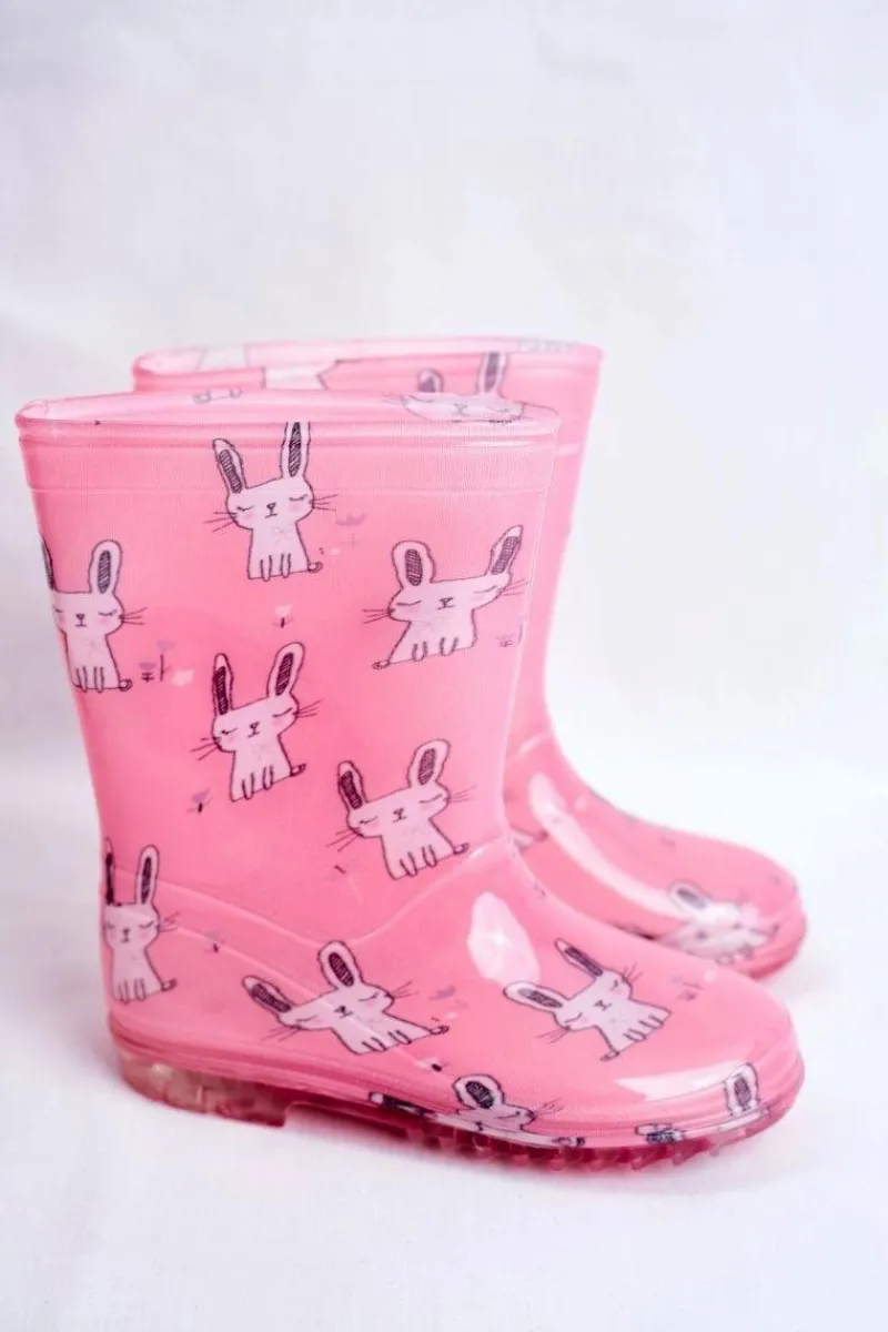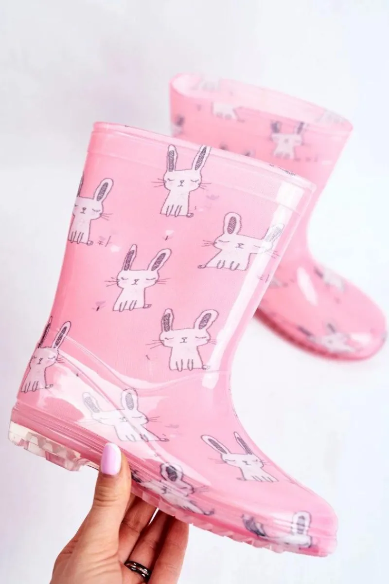 Sale Boto Dziecięce Gumowe Kalosze Różowe Króliczek