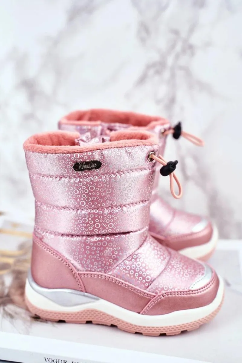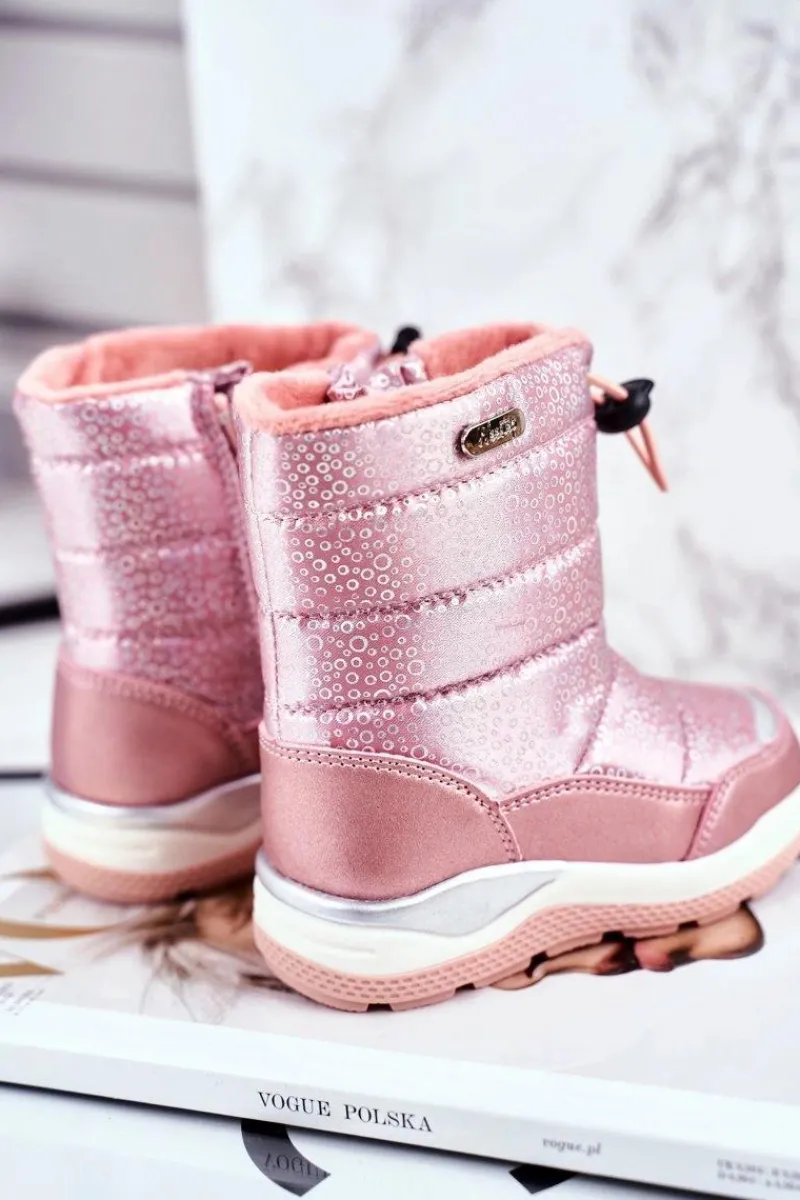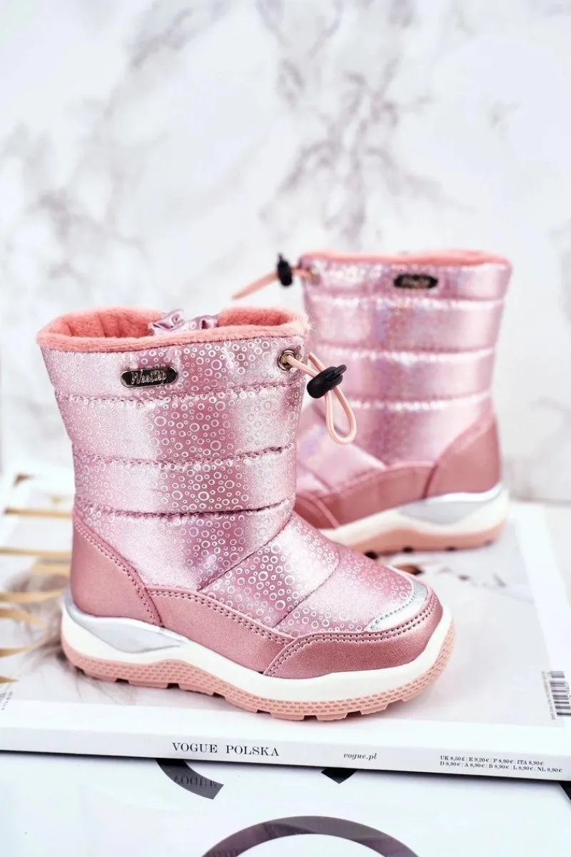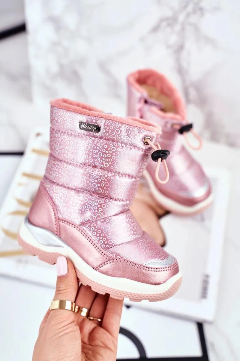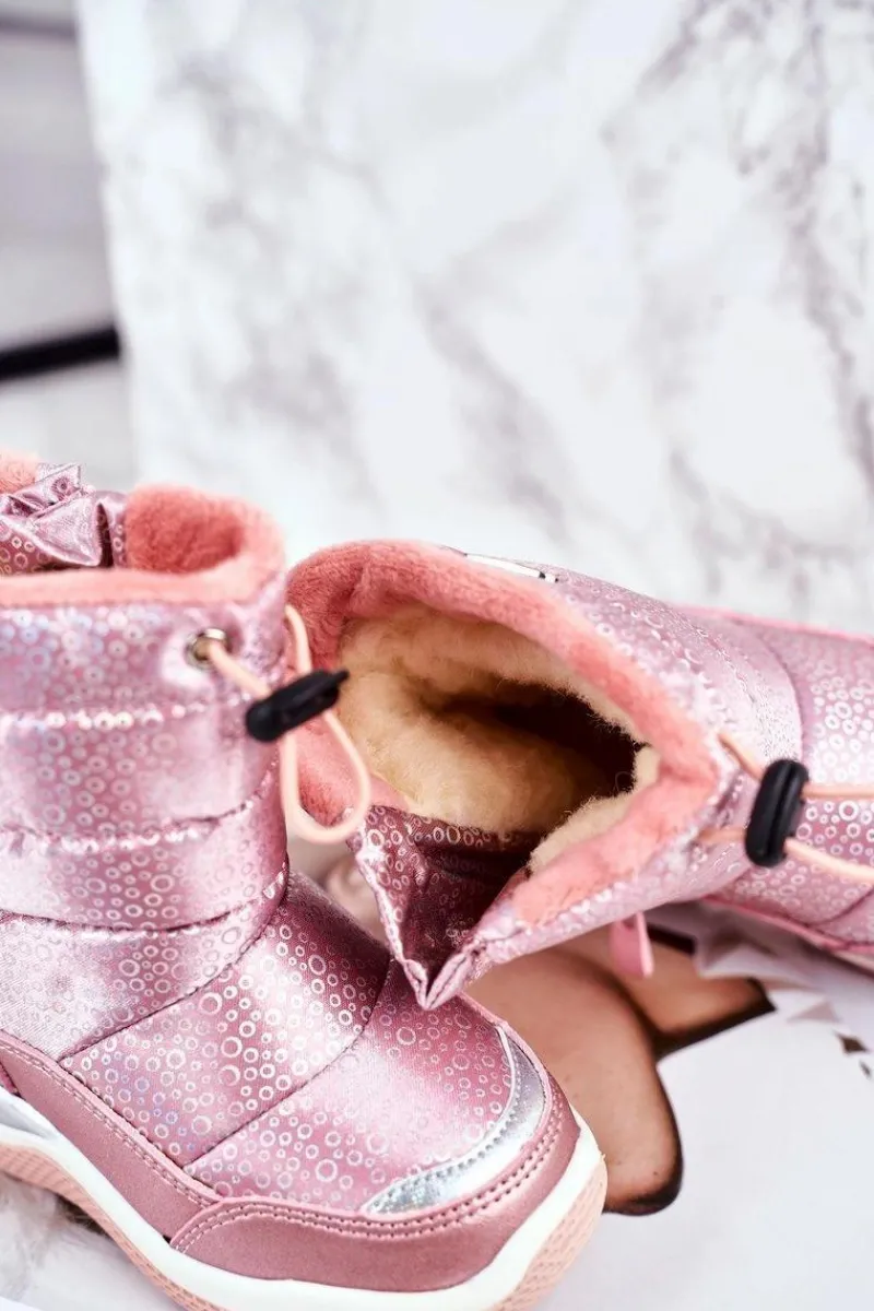 Sale Boto Dziecięce Śniegowce Ocieplane Wełną Różowe Felini