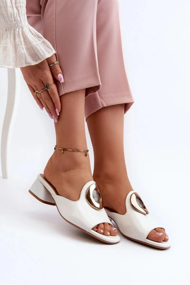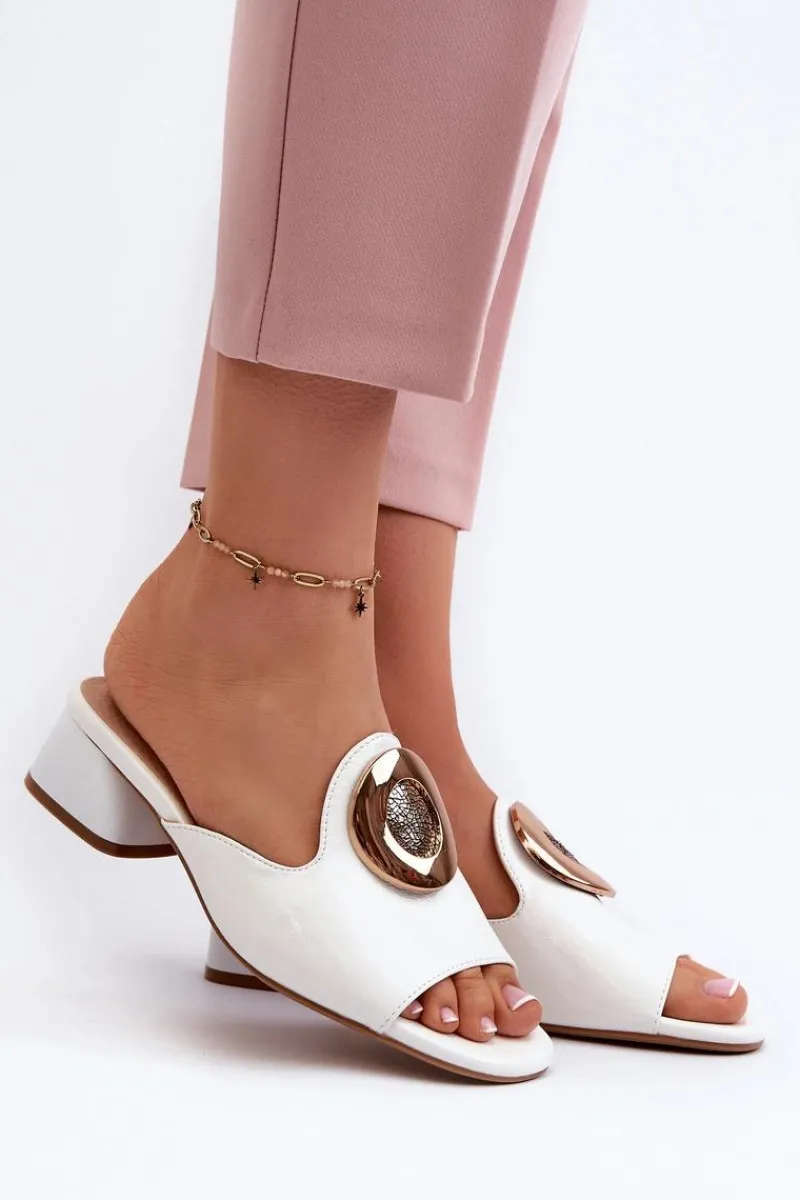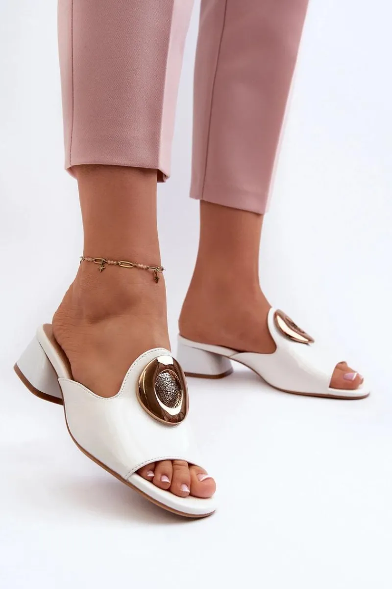 Klapki damskie marki Jezzi. Wykonane z eko skóry. Złota ozdoba dodaje elegancji i subtelności. Doskonale sprawdzą się zarówno na letnie spacery, jak i na wieczorne wyjścia. Dzięki niskiemu obcasowi można w nich czuć się wygodnie przez cały dzień, a jednocześnie prezentują się bardzo kobieco i modnie. Idealne na różne okazje, te klapki dodają blasku Twojej stylizacji. Przy wyborze rozmiaru prosimy sugerować się tabelą rozmiarów.