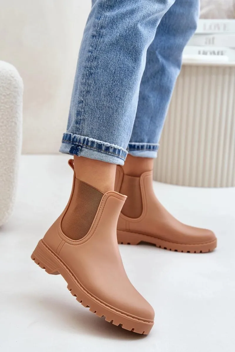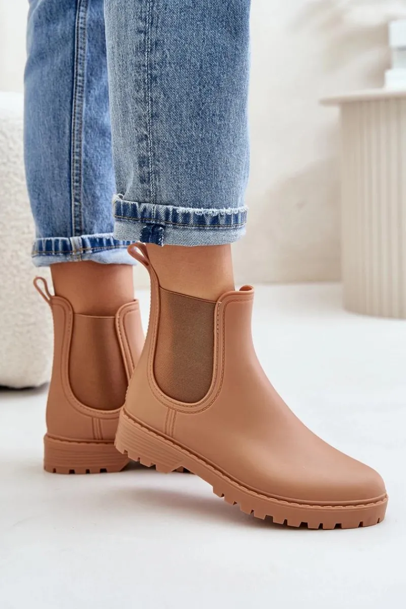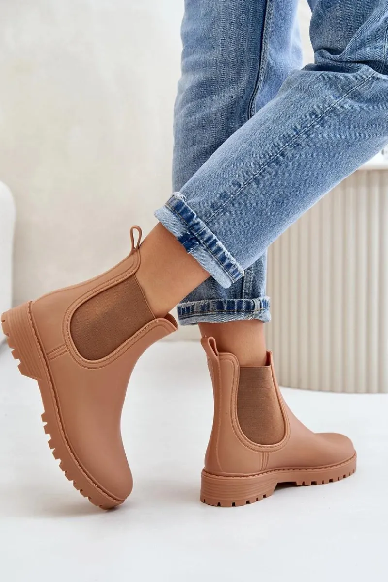 Damskie kalosze wsuwane, wykonane z wytrzymałego materiału. Posiadają elastyczne wstawki po bokach, które ułatwiają zakładanie i zapewniają wygodne dopasowanie do stopy. Idealne na deszczowe dni, te kalosze doskonale łączą funkcjonalność z modnym wyglądem. Przy wyborze rozmiaru prosimy sugerować się tabelą rozmiarów.