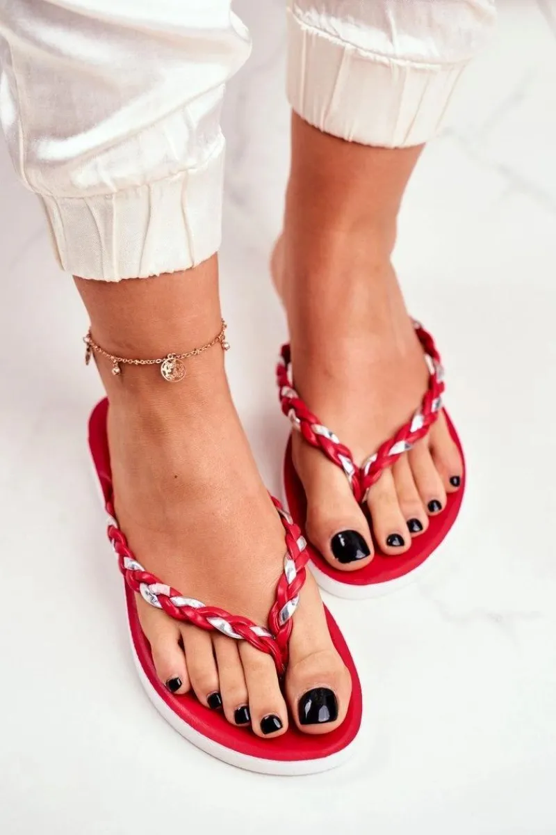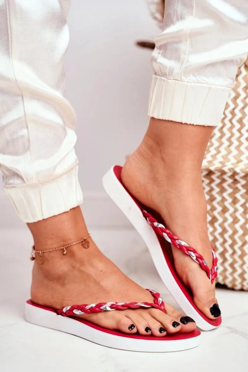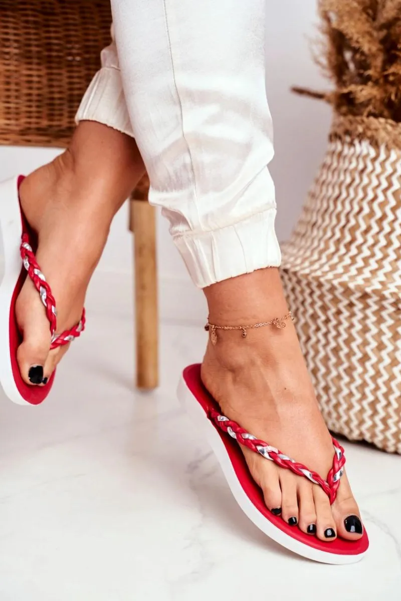 Sale Boto Klapki Damskie Japonki Pleciony Pasek Czerwone Peggie