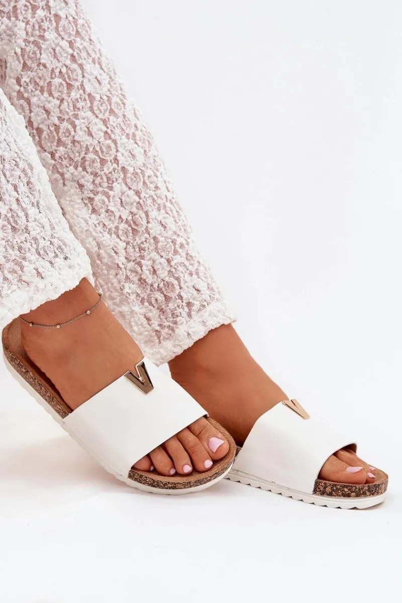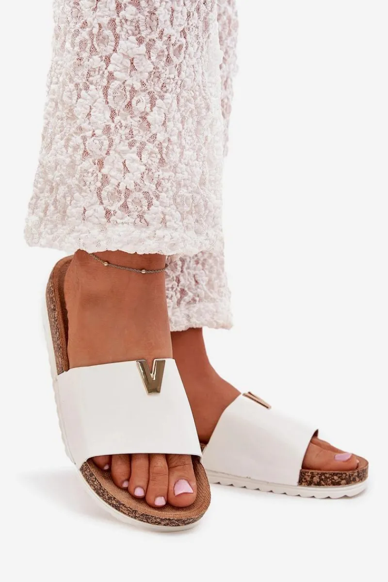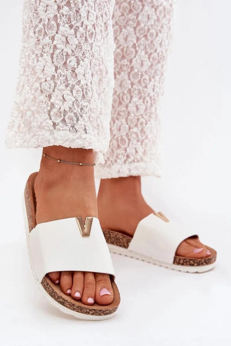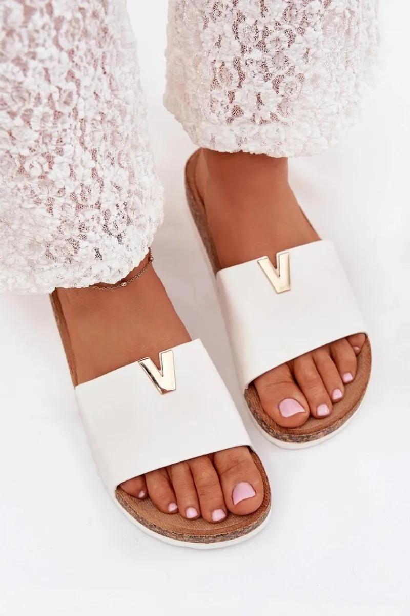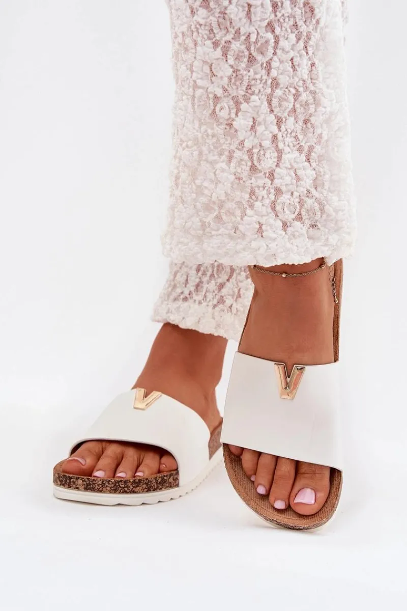Klapki damskie z eko skóry, osadzone na korkowej platformie, to połączenie komfortu i stylu. Złoty detal w kształcie litery „V” dodaje im elegancji, a profilowana, eko zamszowa wkładka zapewnia wygodę przez cały dzień. Idealne do codziennych stylizacji, doskonale komponują się z sukienkami, spódnicami czy spodniami, łącząc funkcjonalność z modnym wyglądem. Przy wyborze rozmiaru prosimy sugerować się tabelą rozmiarów.