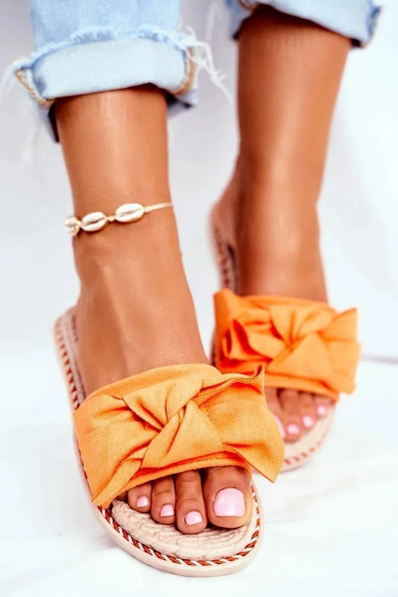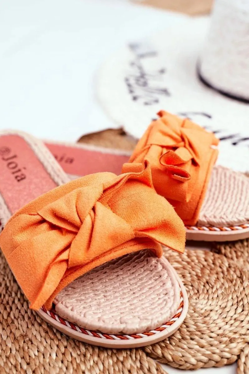 Sale Boto Klapki Damskie Z Kokardką Pomarańczowy Neon Happiness