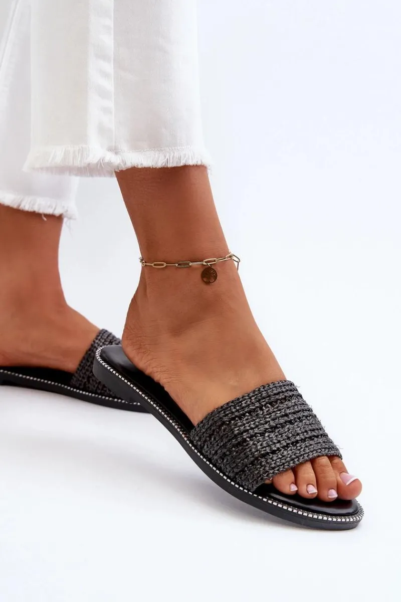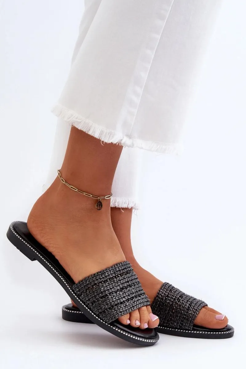 Klasyczne klapki damskie na płaskim obcasie to niezawodny wybór na letnie dni. Prosty design sprawia, że doskonale pasują do wielu letnich stylizacji. Z przodu szeroki pasek z plecionką. Te klapki są doskonałym wyborem dla kobiet ceniących zarówno styl, jak i komfort. Przy wyborze rozmiaru prosimy sugerować się tabelą rozmiarów.