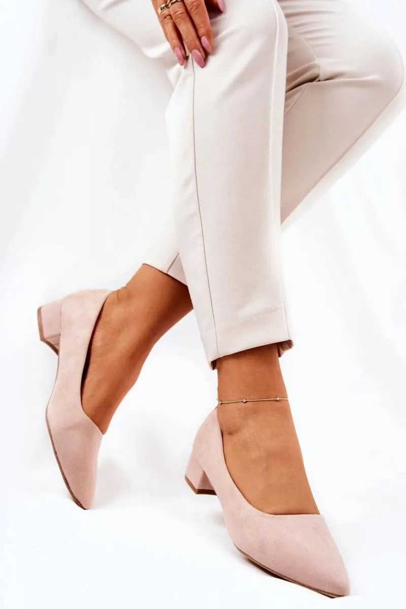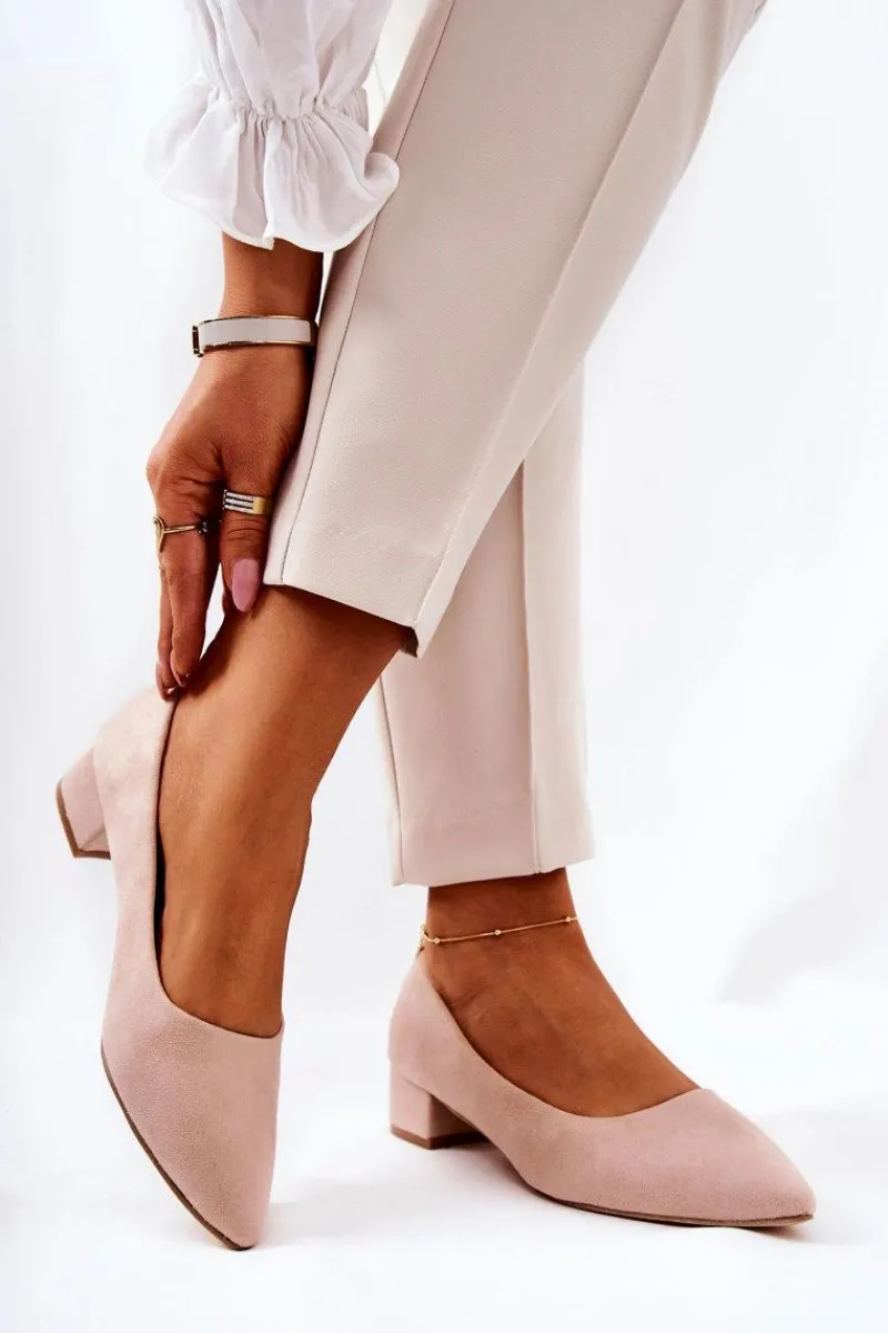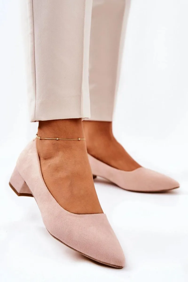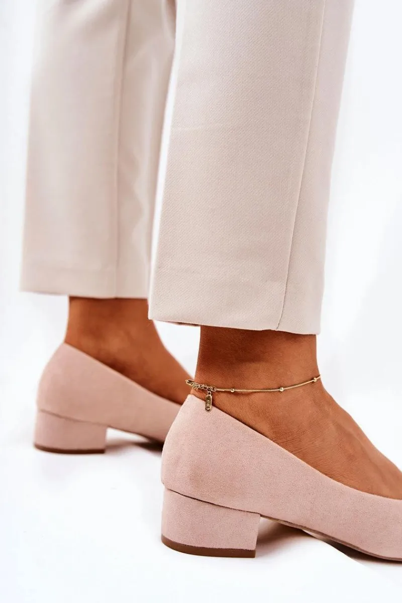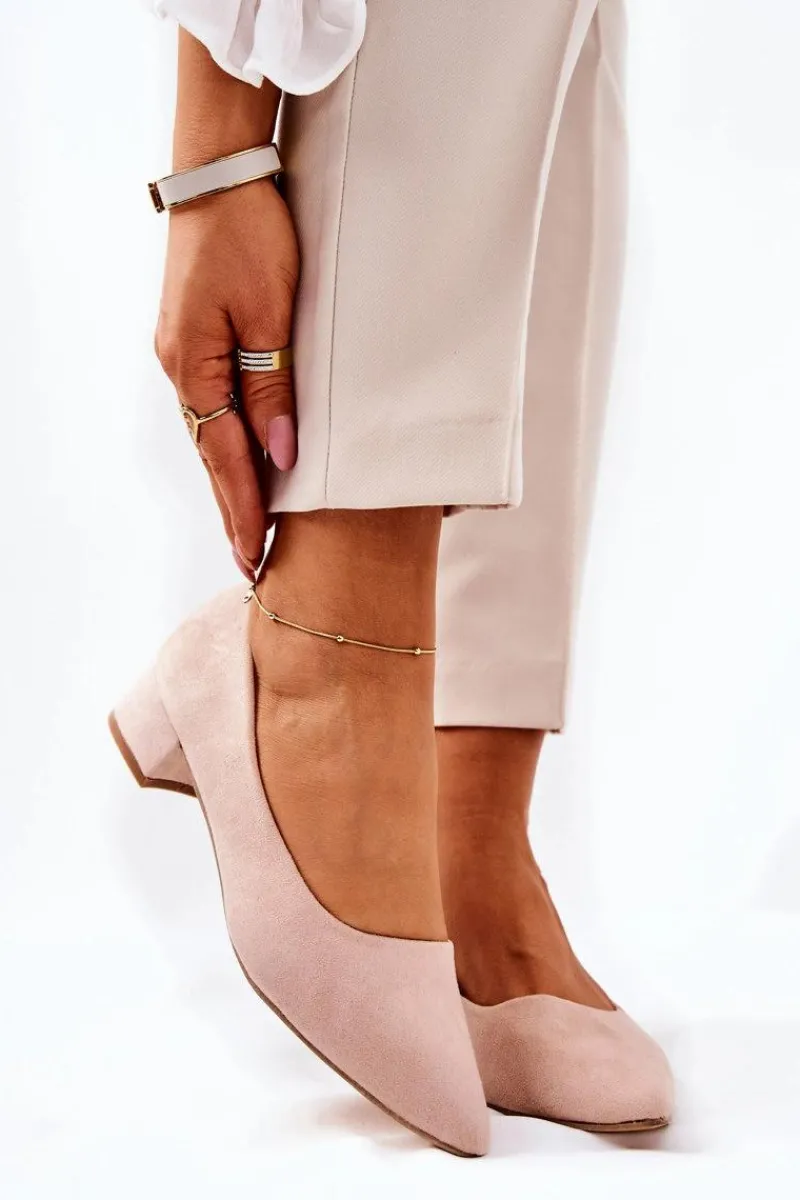 Czółenka na niskim obcasie wykonane z eko zamszu. Modny fason dostępny w wielu pięknych kolorach! Przy wyborze rozmiaru prosimy kierować się tabelą rozmiarów