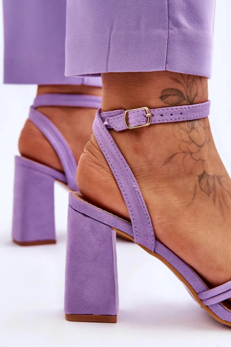 Damskie sandałki na obcasie w postaci słupka to MUST HAVE każdej kobiety! Wyjątkowy model z regulowanym paseczkiem zapinanym na sprzączkę wokół kostki. Sandałki zostały wykonane z zewnątrz z eko zamszu, natomiast wkładka z eko skóry. Model ten jest niezwykle stabilny i komfortowy w użytkowaniu. Przy wyborze rozmiaru prosimy sugerować się tabelą rozmiarów.