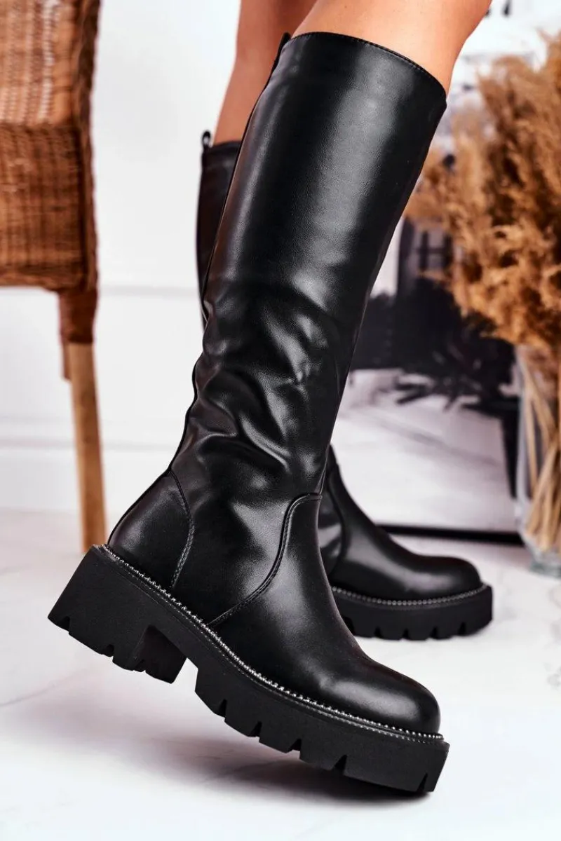 Sale Boto Kozaki Damskie Ciepłe Czarne Ambicious