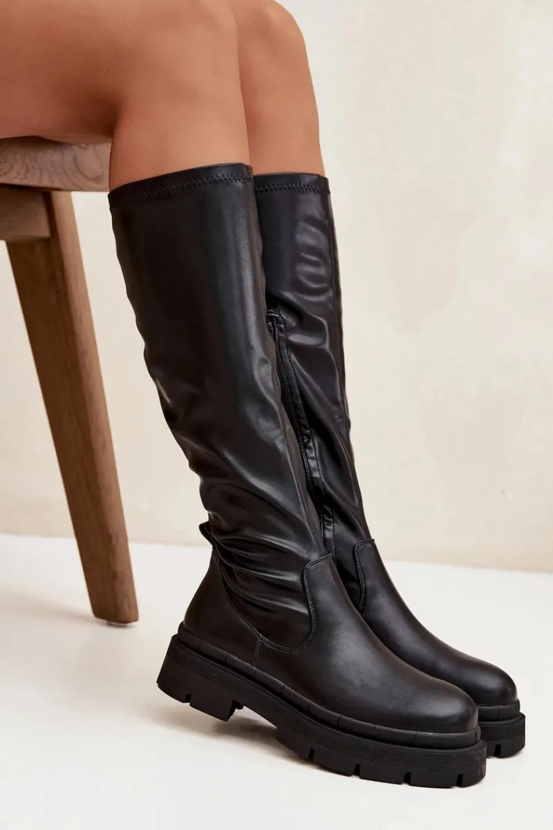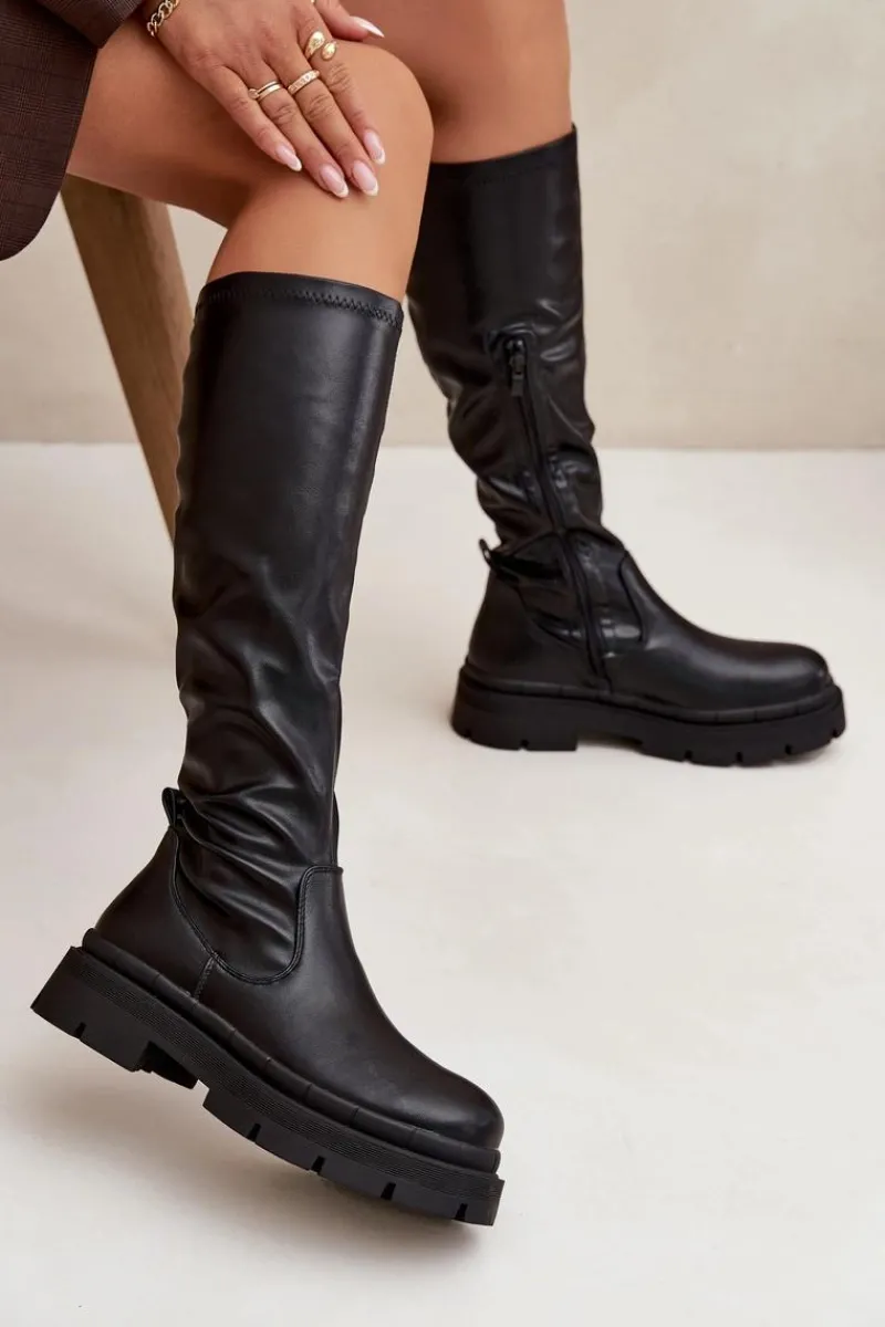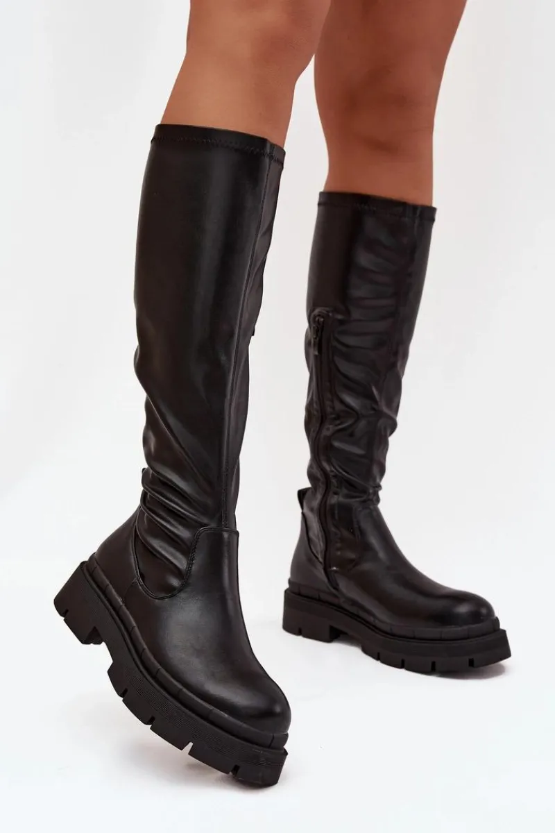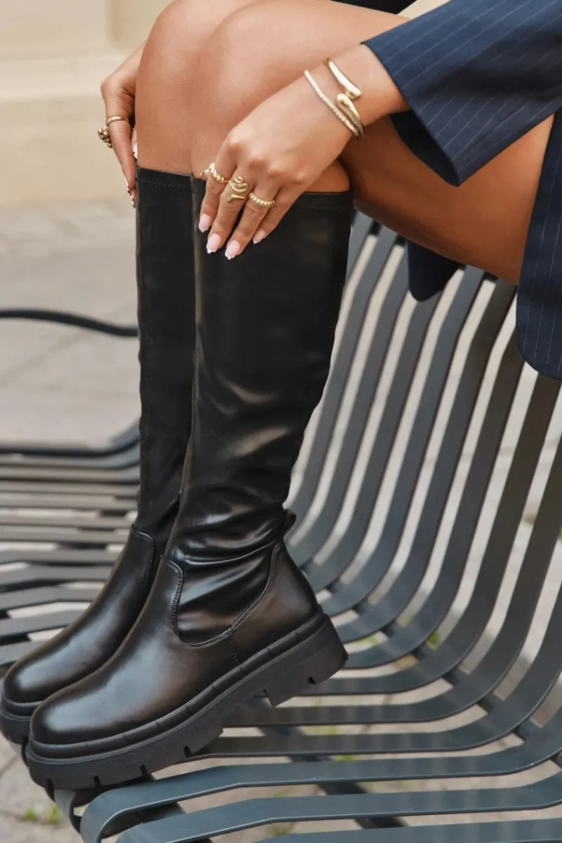 Kozaki damskie wykonane z eko skóry to modny i praktyczny wybór na chłodniejsze dni. Osadzone na platformie gwarantują wygodę, a zaokrąglone noski nadają im klasycznego charakteru. Model wsuwany z dodatkowym suwakiem ułatwia zakładanie, a ocieplenie na wysokości stopy zapewnia ciepło. Stylowy fason sprawia, że botki świetnie prezentują się w zestawieniu z sukienkami i spódnicami, dodając stylizacjom kobiecego charakteru. Przy wyborze rozmiaru prosimy sugerować się tabelą rozmiarów.