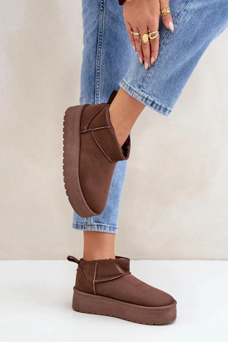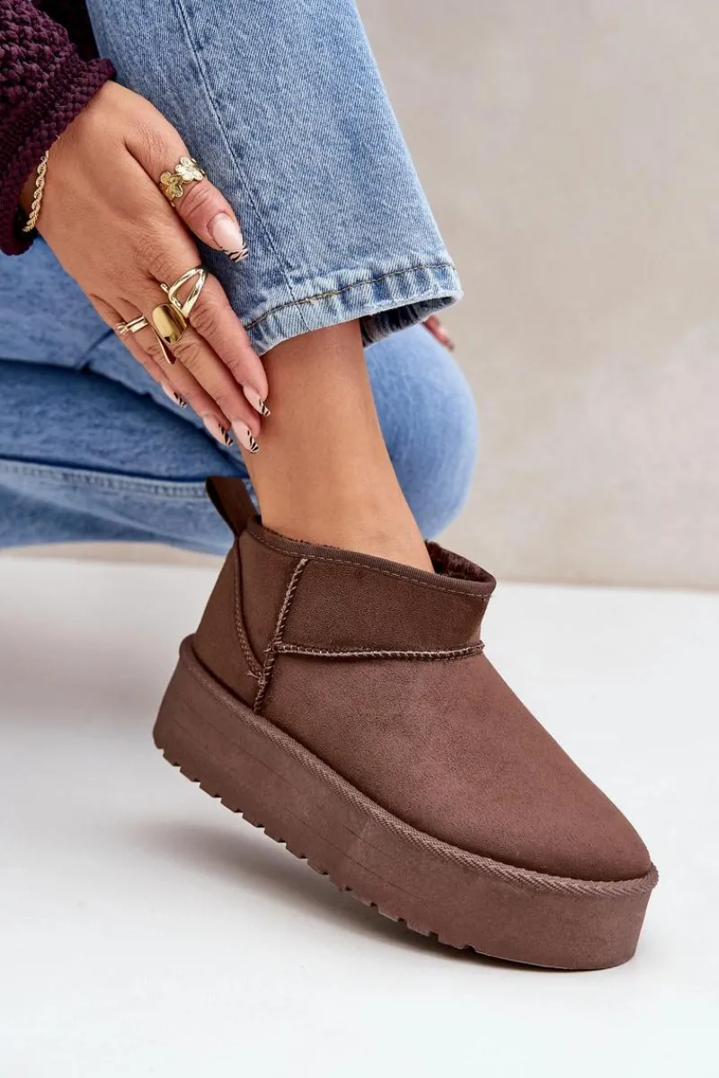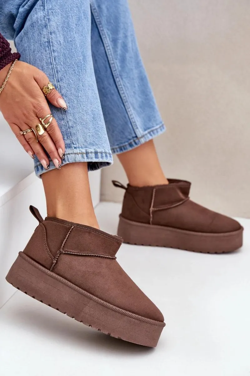 Klasyczne śniegowce idealnie sprawdzą się podczas chłodnych dni. Wykonane z eko zamszu. Osadzone na platformie, która doskonale odizoluje od zimnego podłoża. Wnętrze butów zostało ocieplone grubym futerkiem, co zapewni ciepło w mroźne dni. Ten klasyczny model dopasujesz do wielu stylizacji! Przy wyborze rozmiaru prosimy sugerować się tabelą rozmiarów.