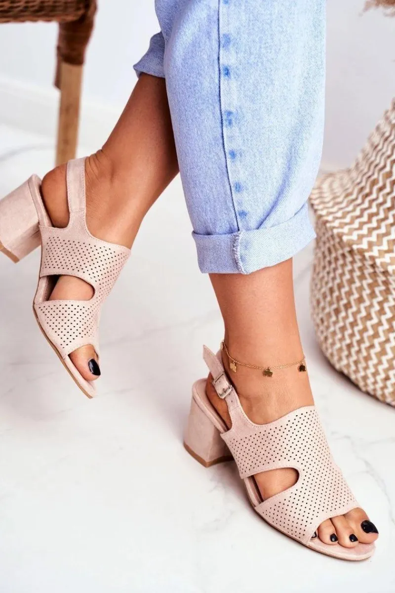 Wygodne sandały to marzenie każdej kobiety, a co jeśli będą jeszcze eleganckie, kobiece, przewiewne i stabilne? Wówczas muszą być Twoje już dziś! Takie buty nie są często spotykane na sklepowych półkach. O Twój komfort zadba miękka wkładka z eko skóry oraz stabilny, 7cm obcas w formie grubego słupka. Wspaniały wzór wierzchni w liczne, malutkie dziurki sprawi, w połączeniu z odkrytymi palcami, że zostaniesz zauważona, a Twoje stopy będą oddychać nawet w najcieplejsze dni! Sandały sprawdzą się jako piękne dopełnienie większości codziennych oraz wieczorowych stylizacji. Przy wyborze rozmiaru prosimy sugerować się tabelą rozmiarów.