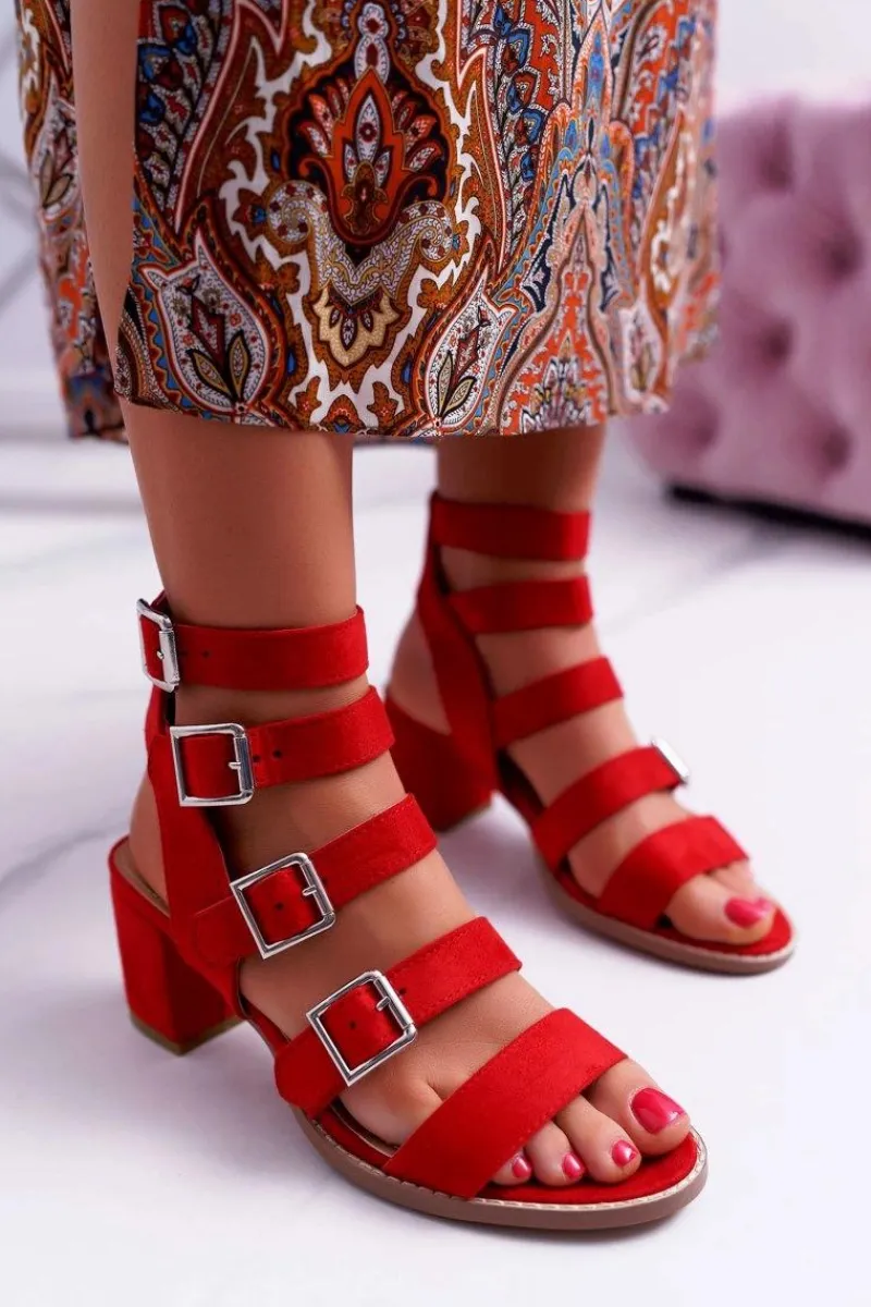 Sale Boto Sandały Damskie Na Słupku Gladiatorki Zamsz Czerwone Nella
