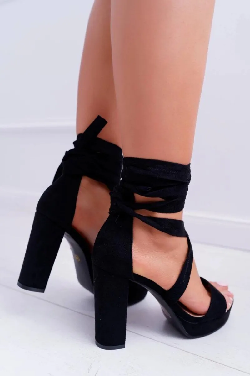 Sale Boto Sandały Damskie Na Słupku Platforma Wiązane Czarne LaFiesta
