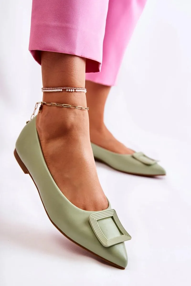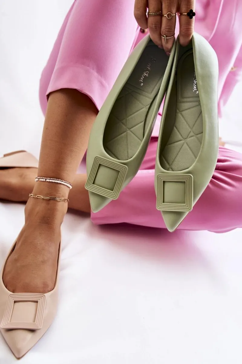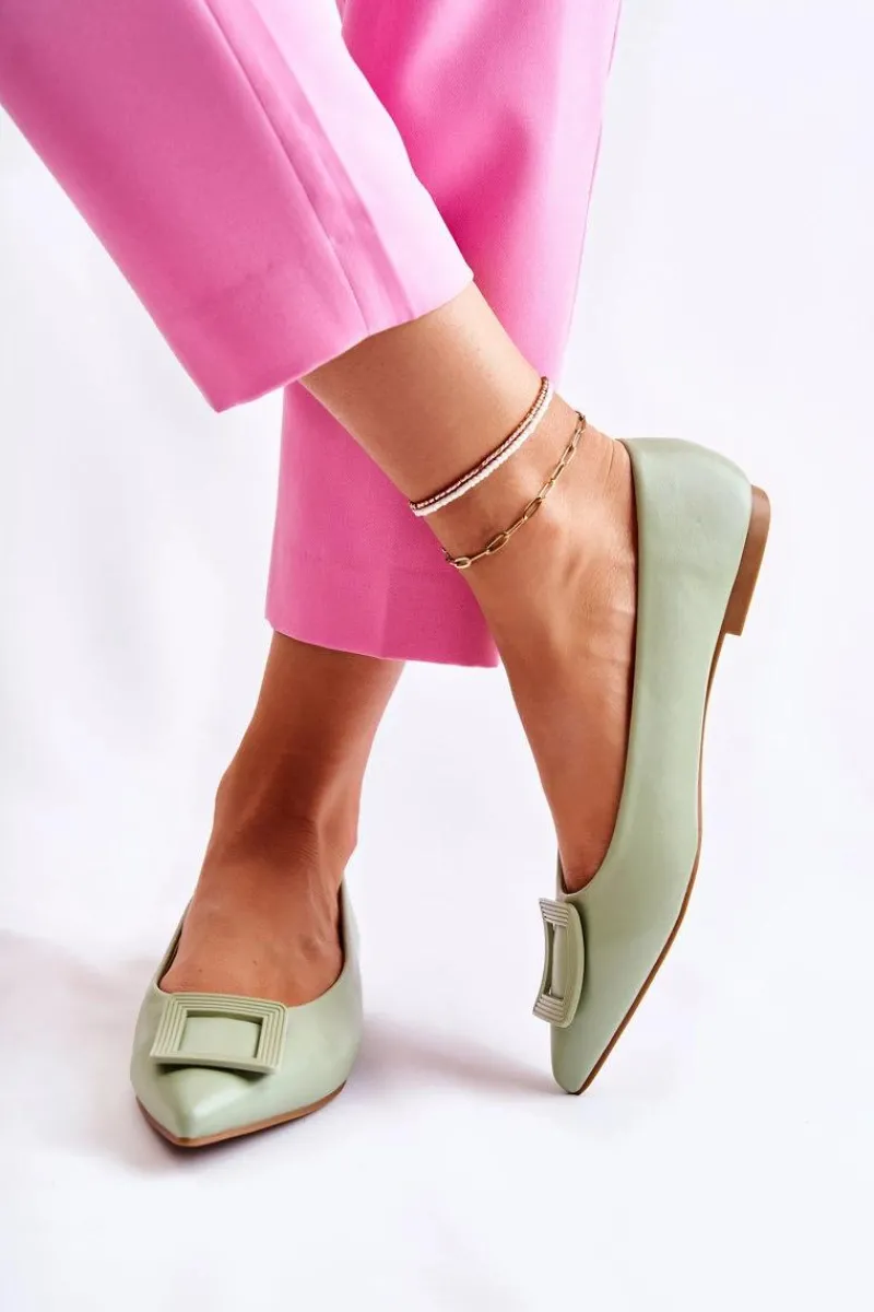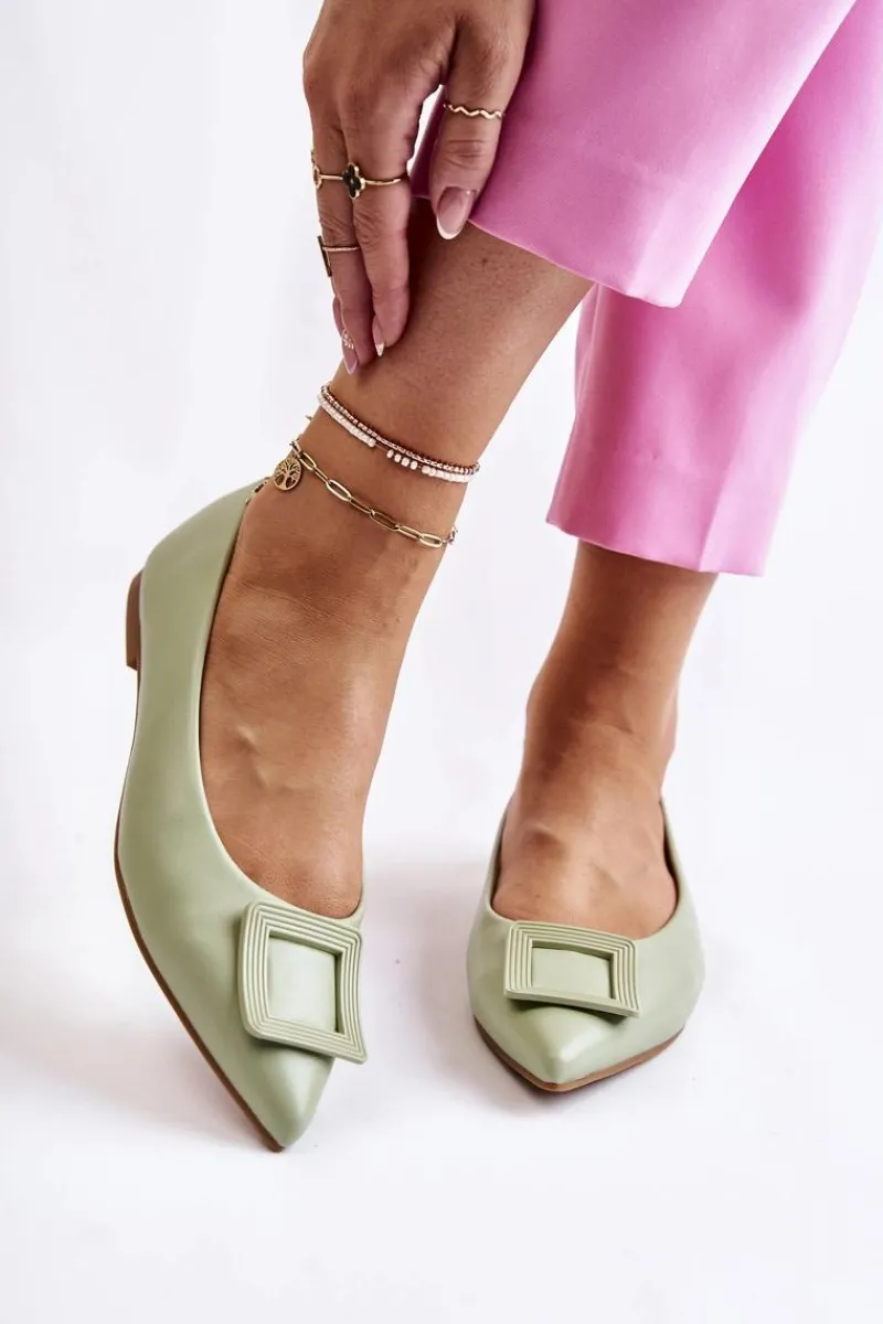 Modne baleriny z ozdobnym elementem z tworzywa sztucznego na przodzie. Buty wykonane są w całości z eko skóry. Miękka wkładka zadba o Twój komfort nawet podczas całodziennego użytkowania. Nosek w szpic. Baleriny dopełnią wiele letnich stylizacji. Osadzone na płaskim obcasie z antypoślizgową podeszwą. Koniecznie powinnaś sprawdzić także pozostałą kolekcję balerinek! Przy wyborze rozmiaru prosimy sugerować się tabelą rozmiarów.