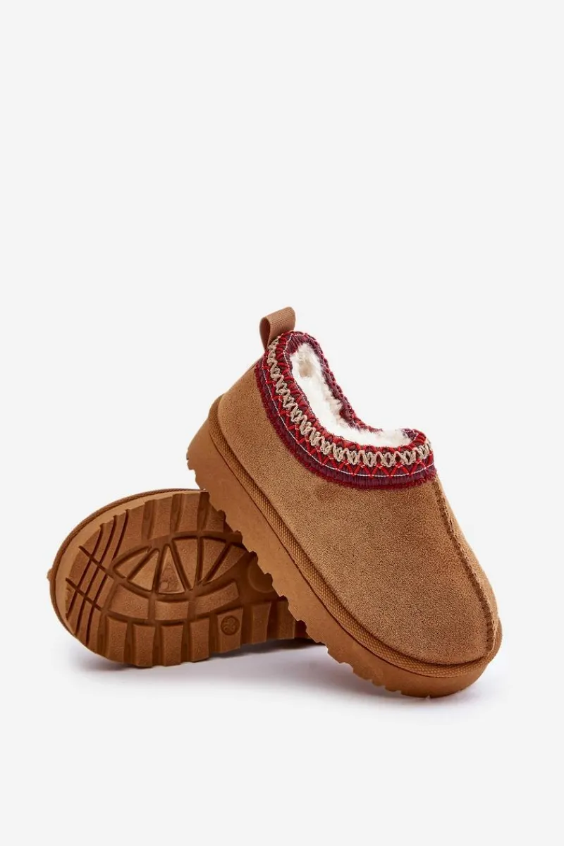 Śniegowce dziecięce z uroczym wzorem na górze cholewki. W środku ocieplone syntetycznym, grubym futerkiem, co zapewni ciepło w najmroźniejsze dni. Wykonane z eko zamszu. Osadzone na grubej podeszwie, która świetnie odizoluje od zimnego podłoża. Model ten dostępny jest również w rozmiarach damskich. Stwórz komplet mama + dziecko! Przy wyborze rozmiaru prosimy kierować tabelą rozmiarów.