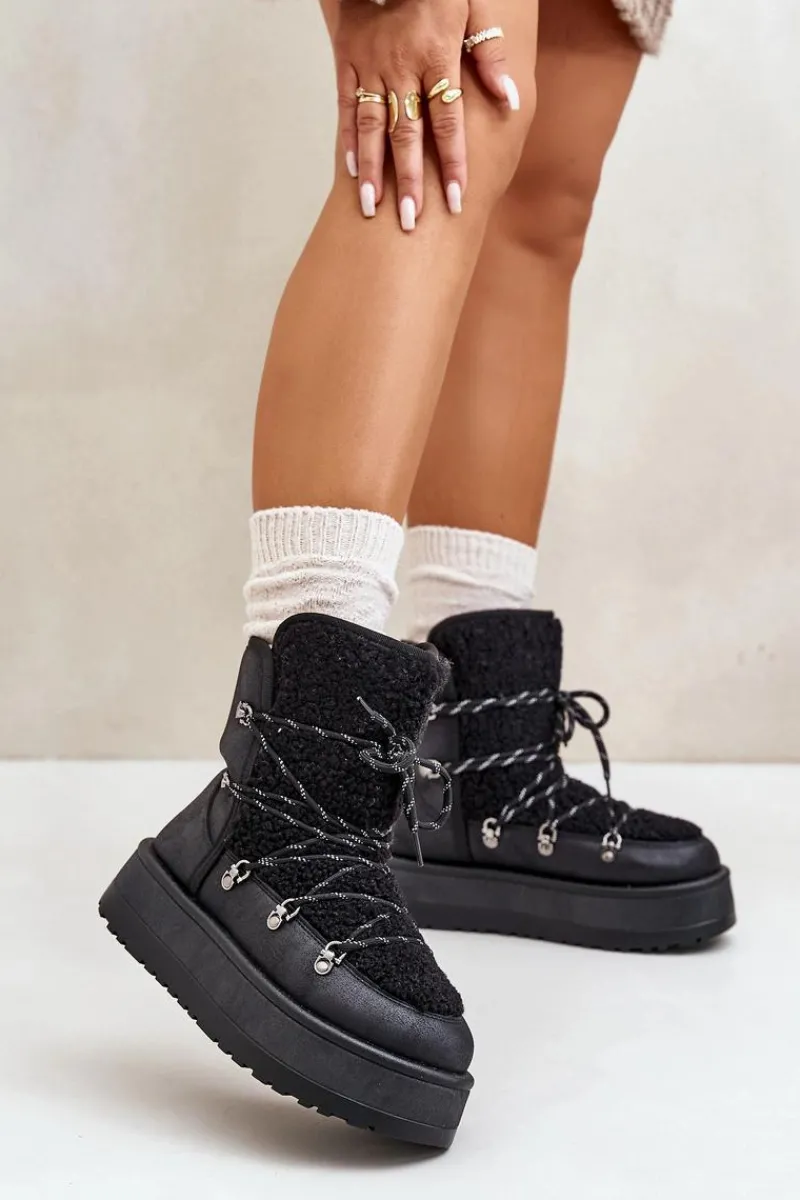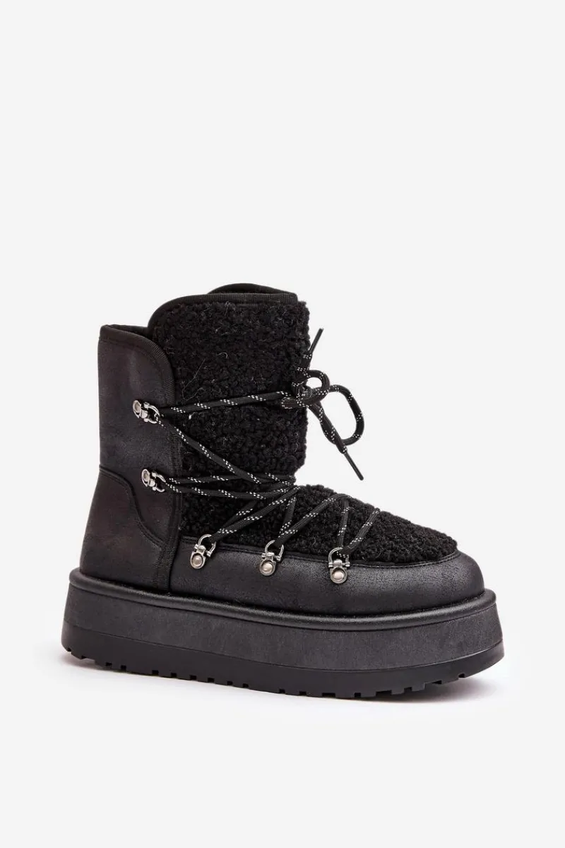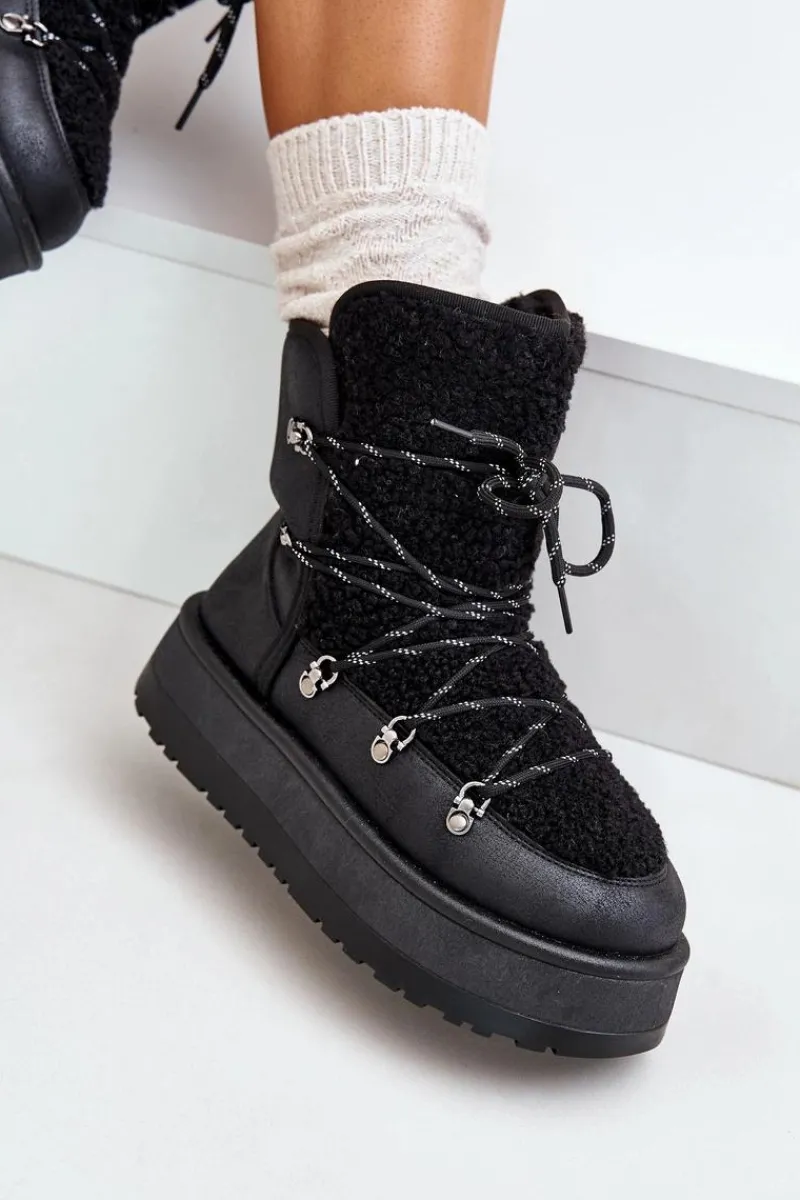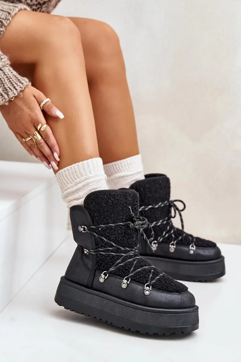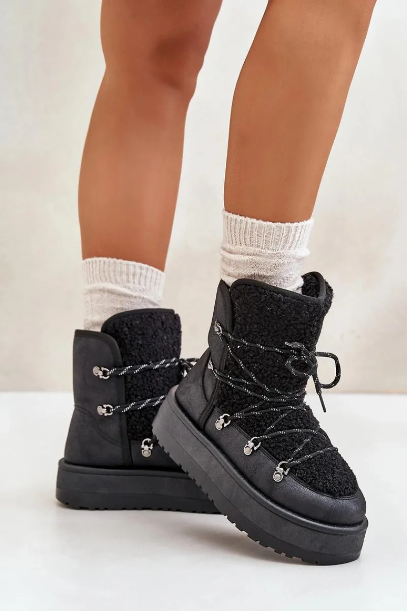Damskie śniegowce na masywnej platformie, która doskonale odizoluje od zimnego podłoża. Środek ocieplony grubym futerkiem, co zapewni ciepło w mroźne dni. Cholewka z wiązaniem i syntetycznym kożuszkiem. Koniecznie powinnaś je mieć w swojej zimowej garderobie! Przy wyborze rozmiaru prosimy sugerować się tabelą rozmiarów.