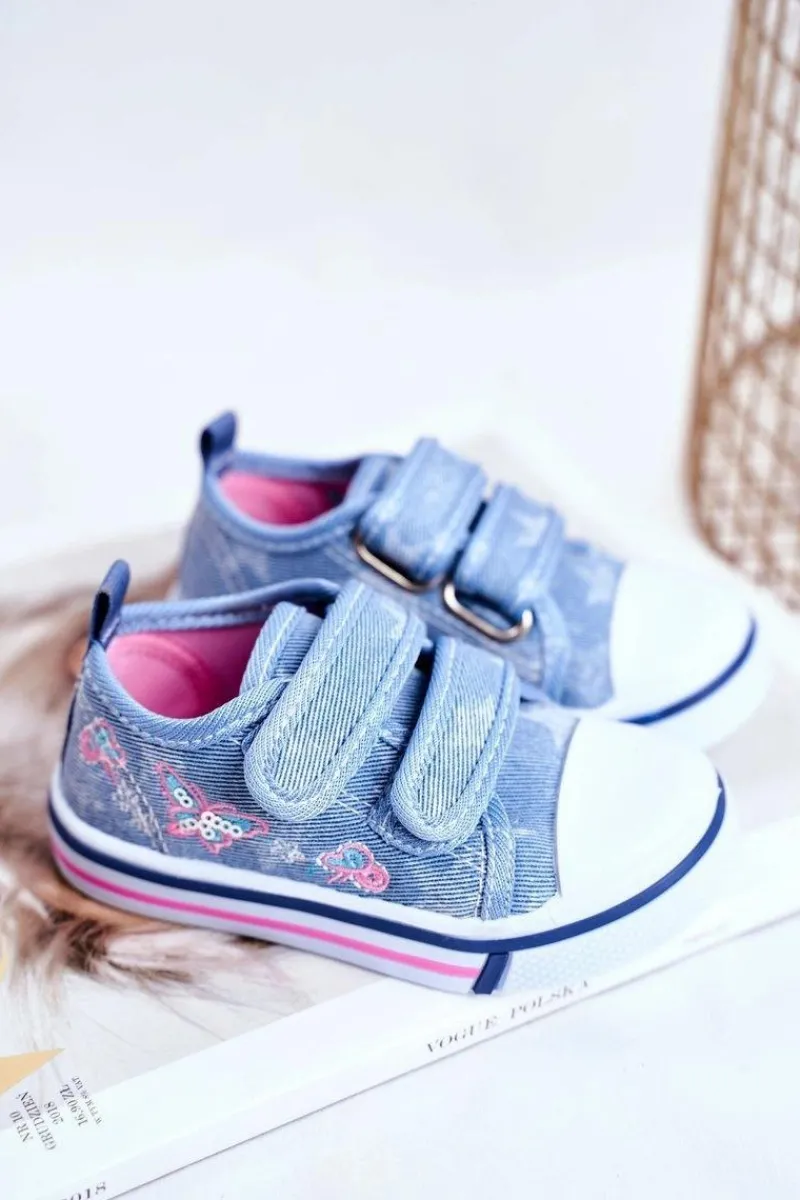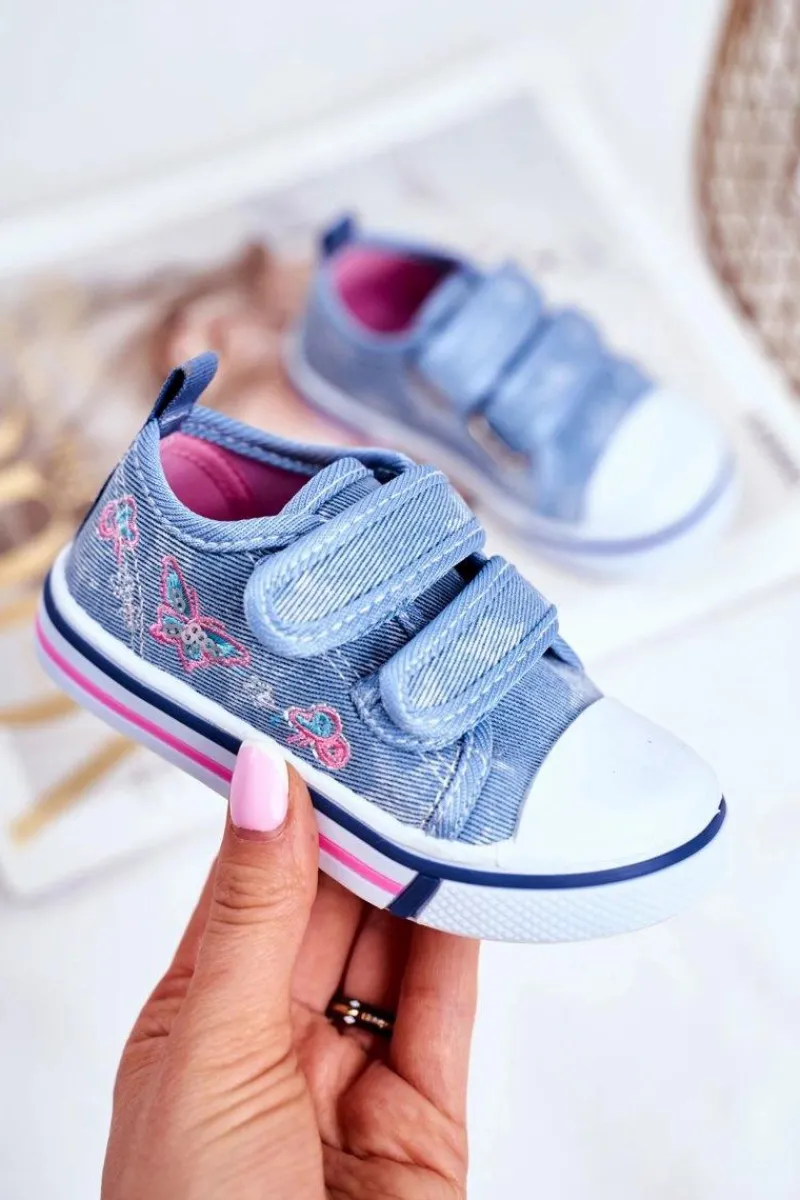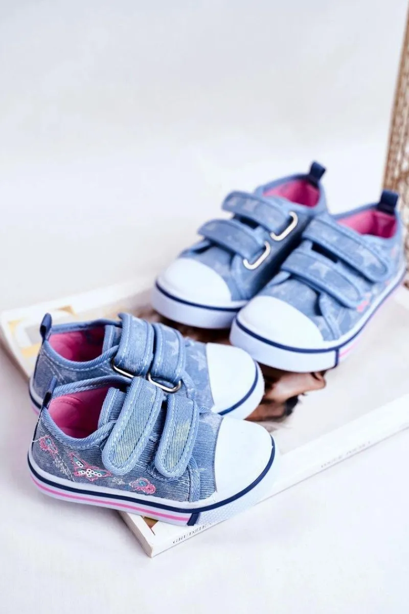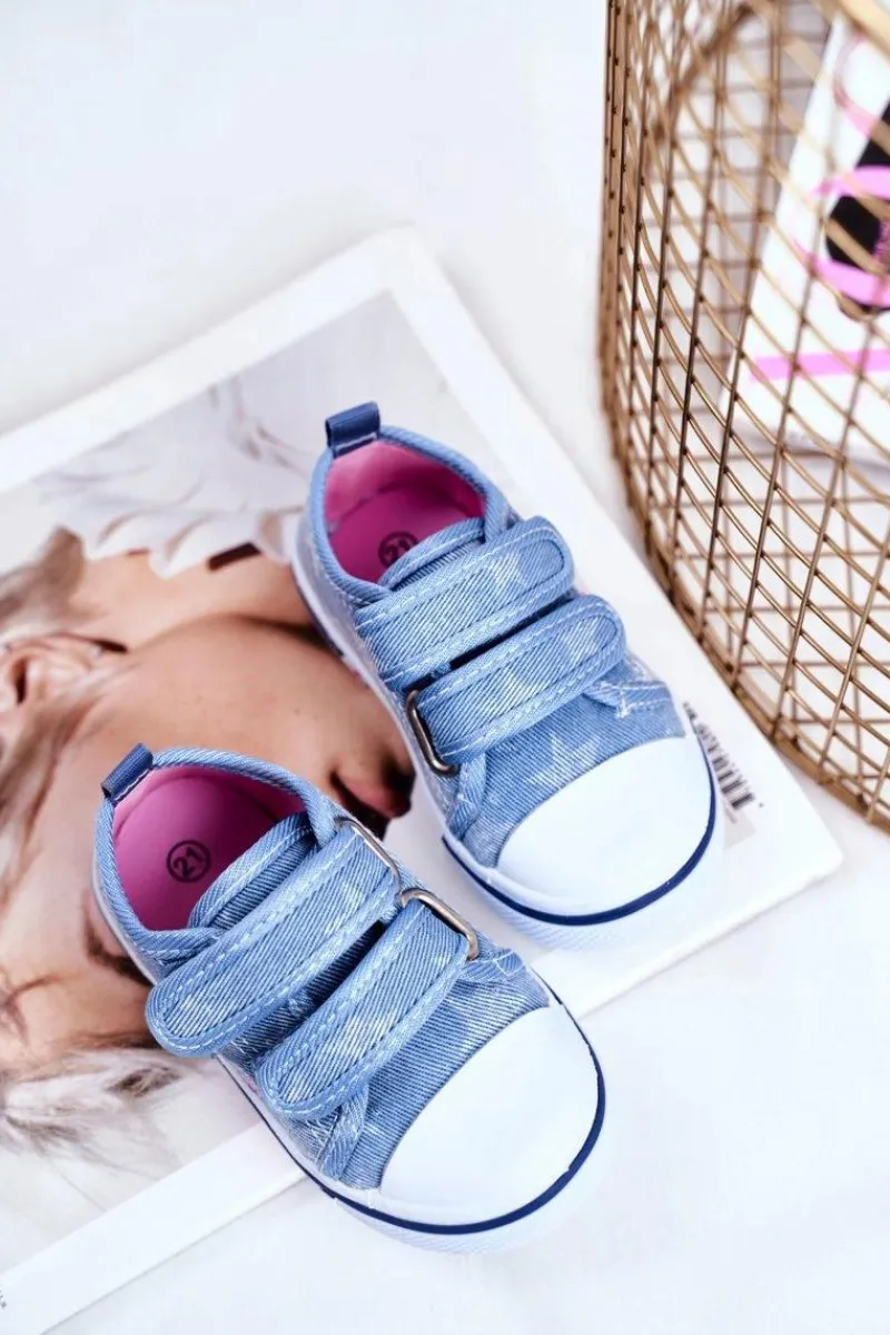 Sale Boto Tenisówki Dziecięce na Rzepy Niebieskie Junalo