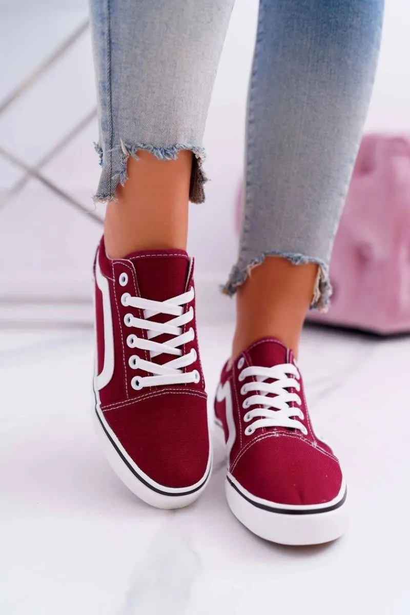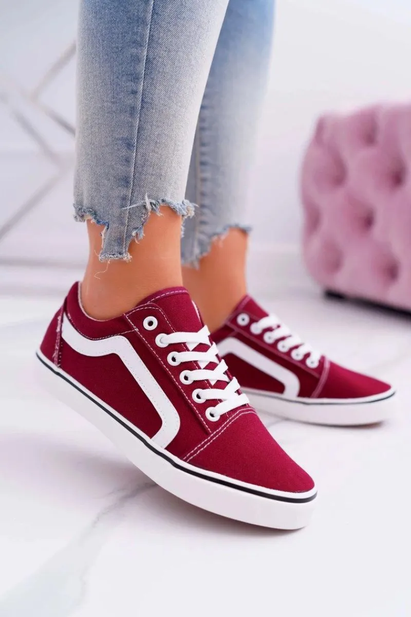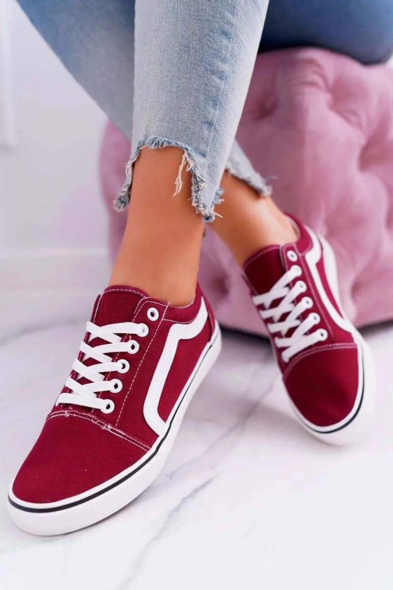 Sale Boto Trampki Damskie Materiałowe Bordowe Bestro