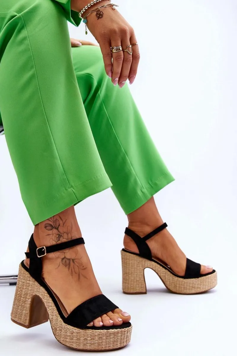 Świetne sandałki na masywnym obcasie w postaci słupka oraz platformie. Wykonane z przyjemnej w dotyku ekologicznej skóry. Sandałki posiadają odkryty, zaokrąglony nosek. Zapinane wokół kostki na regulowany pasek ze sprzączką. Ten model z pewnością sprawdzi się w wielu stylizacjach! Przy wyborze rozmiaru prosimy sugerować się tabelą rozmiarów.