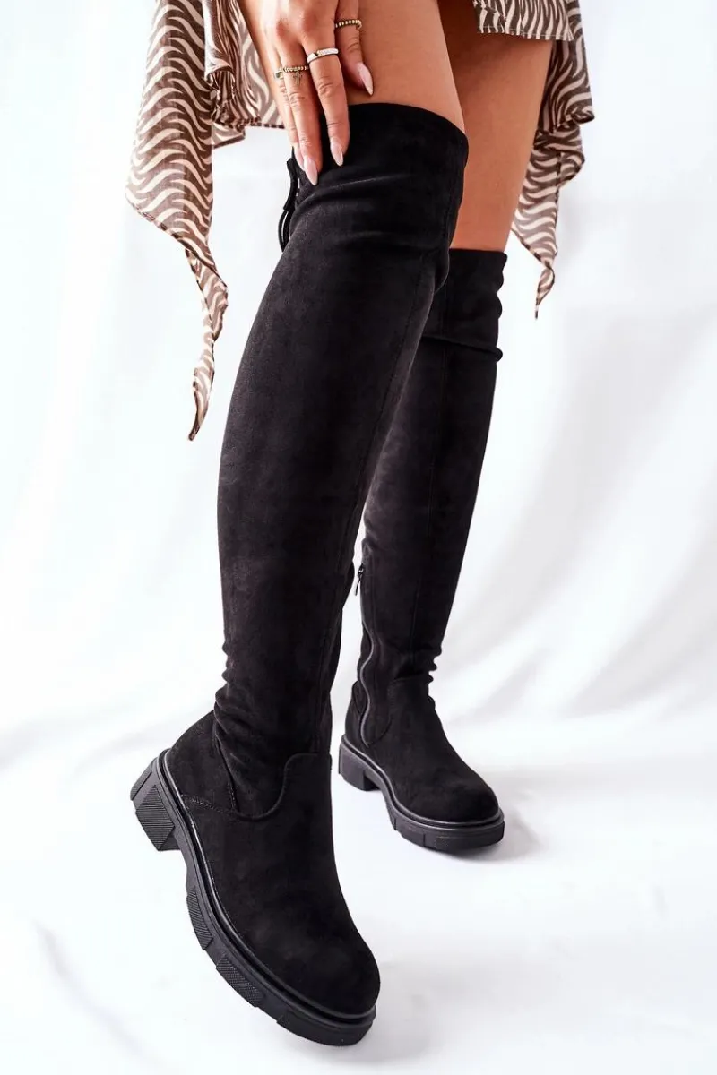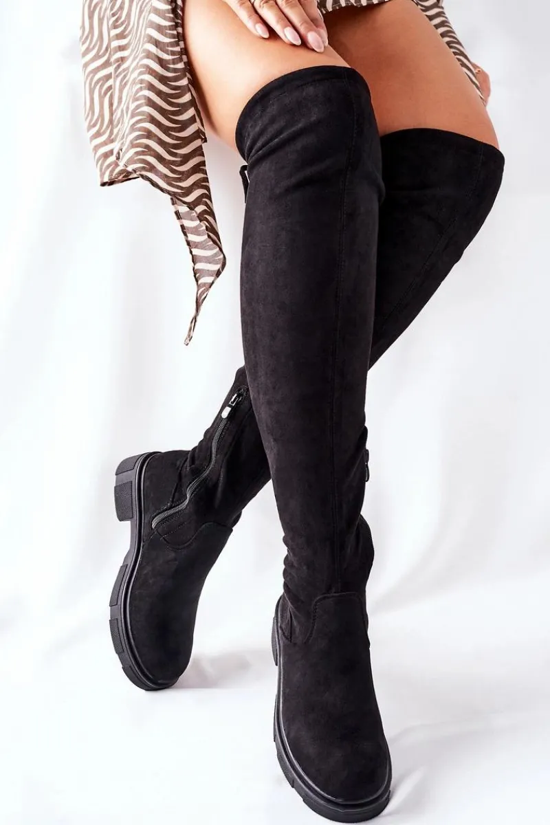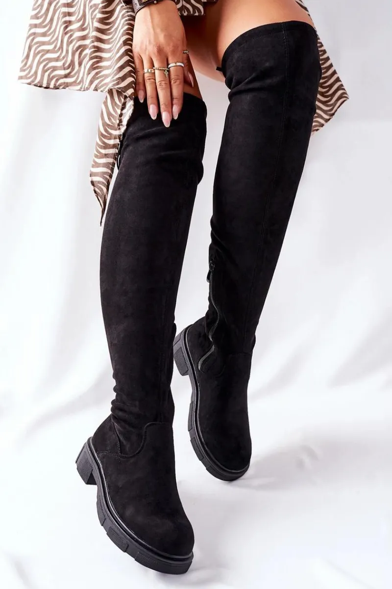 Kozaki za kolano wykonane z miękkiego eko zamszu. Wszyty suwak ułatwi zakładanie.