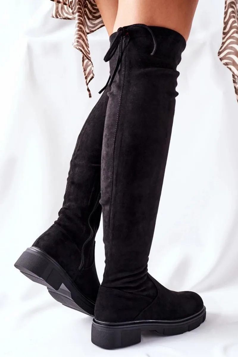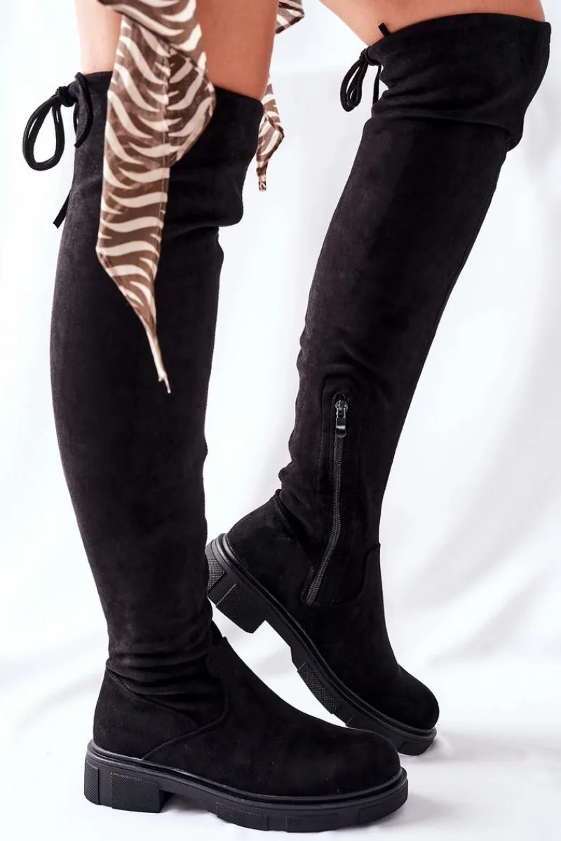 Sale Boto Zamszowe Kozaki Za Kolano Czarne Selina