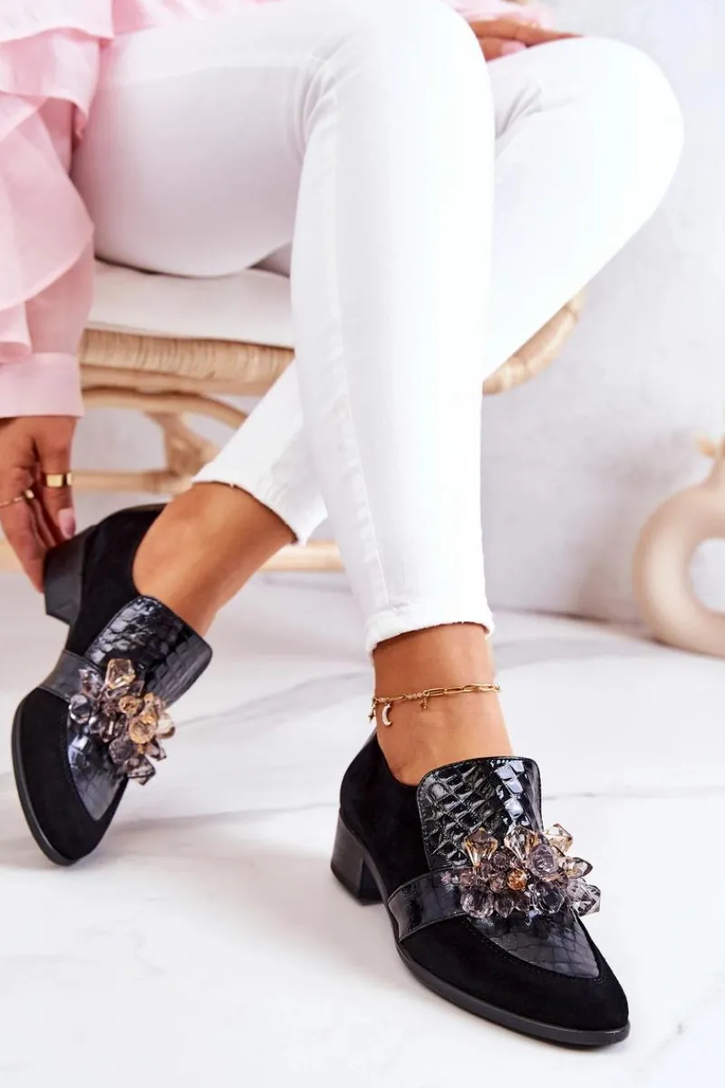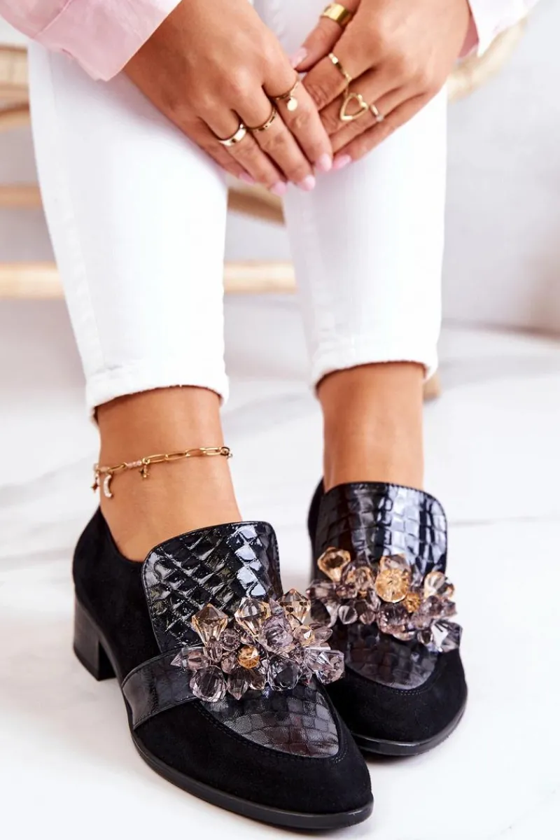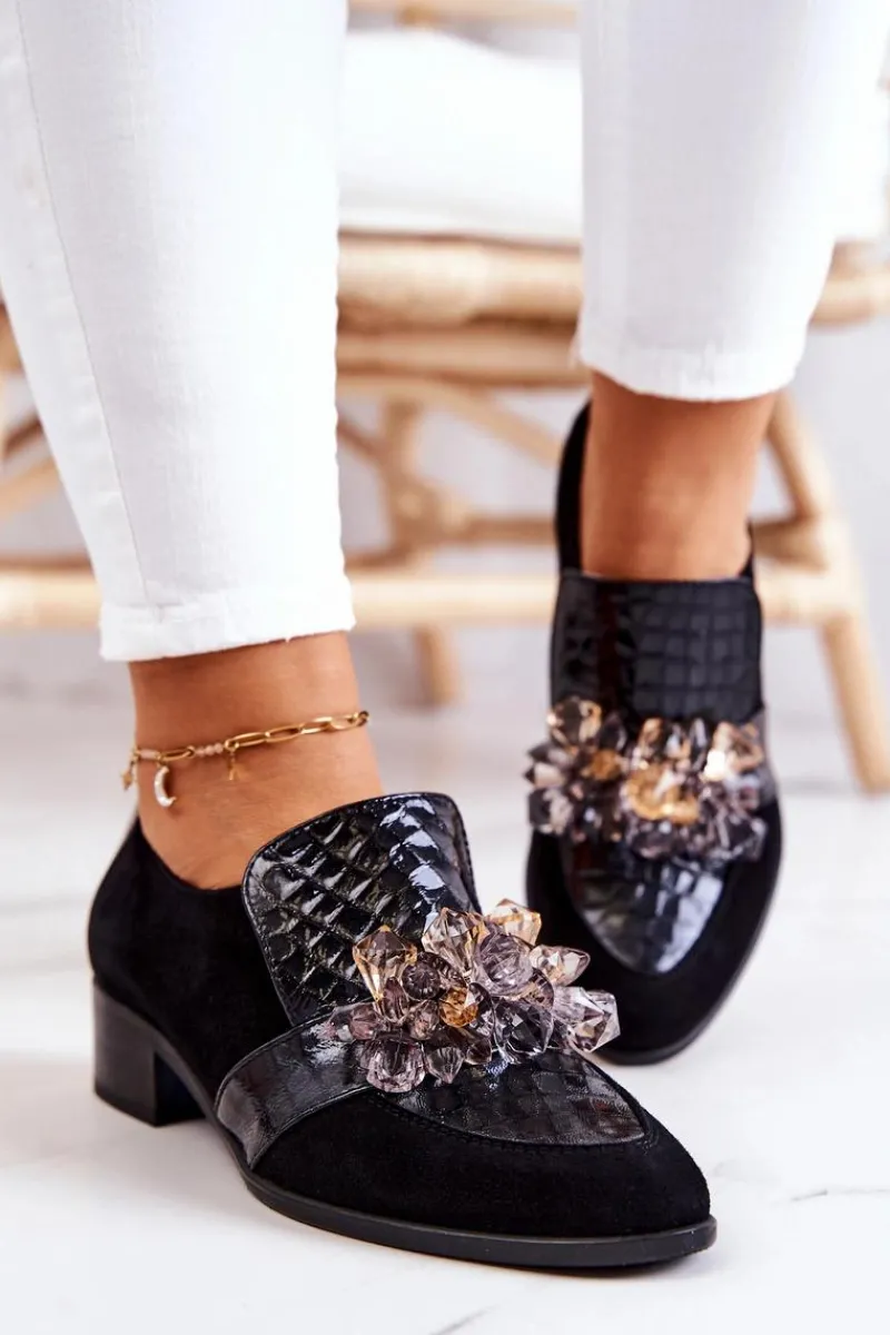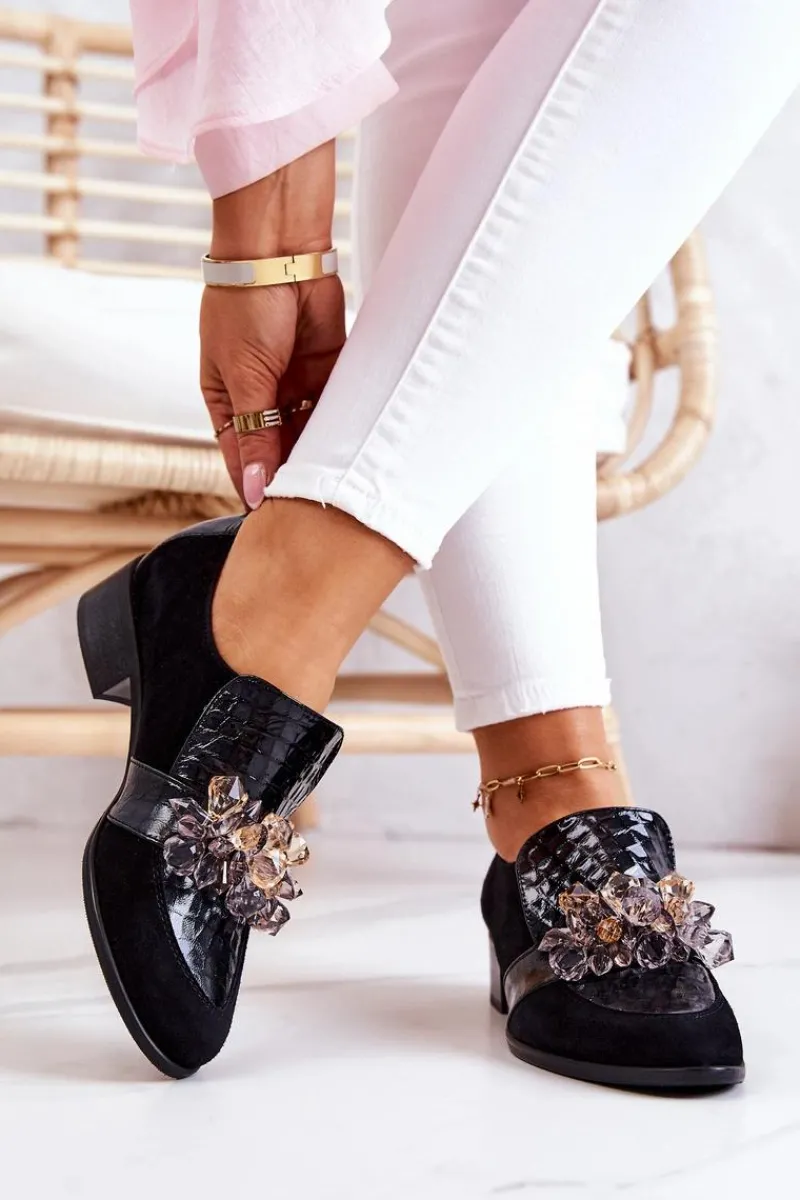 Półbuty są wykonane z naturalnej skóry. Modny krokodyli wzór na przodzie oraz tyle. Miękka wkładka z naturalnej skóry daje poczucie komfortu na każdym kroku. Buty wykonane z dbałością o szczegóły. Piękna ozdoba na przodzie nadaje butom elegancji! Buty posiadają niewysoki obcas. Nie zwlekaj i kup już dziś! Przy wyborze rozmiaru prosimy sugerować się tabelą rozmiarów.