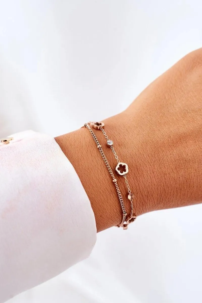 Sale Bransoletka Na Podwójnym Łańcuszku Różowe Złoto Bransoletki